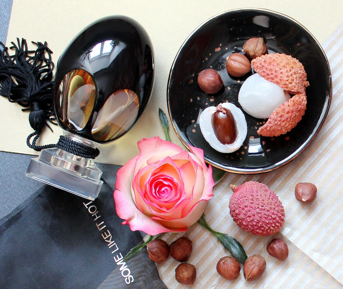 Аромат Some Like it Hot призывает к смелым приключениям, не опасаясь сюрпризов. Он представляет собой лаконичную, но впечатляющую композицию, в которой сочетаются насыщенные хрустящие ноты лесного ореха, сладкий и чарующий личи, а также утонченная красота розы.