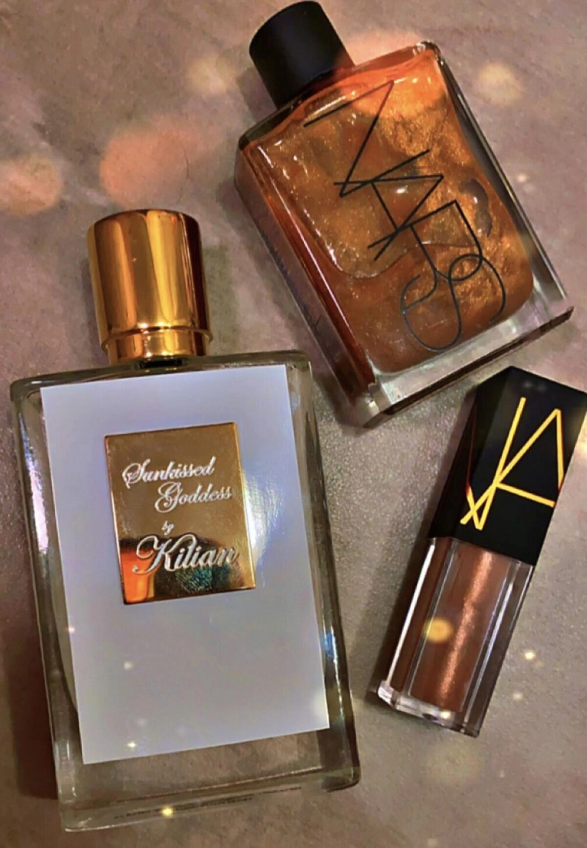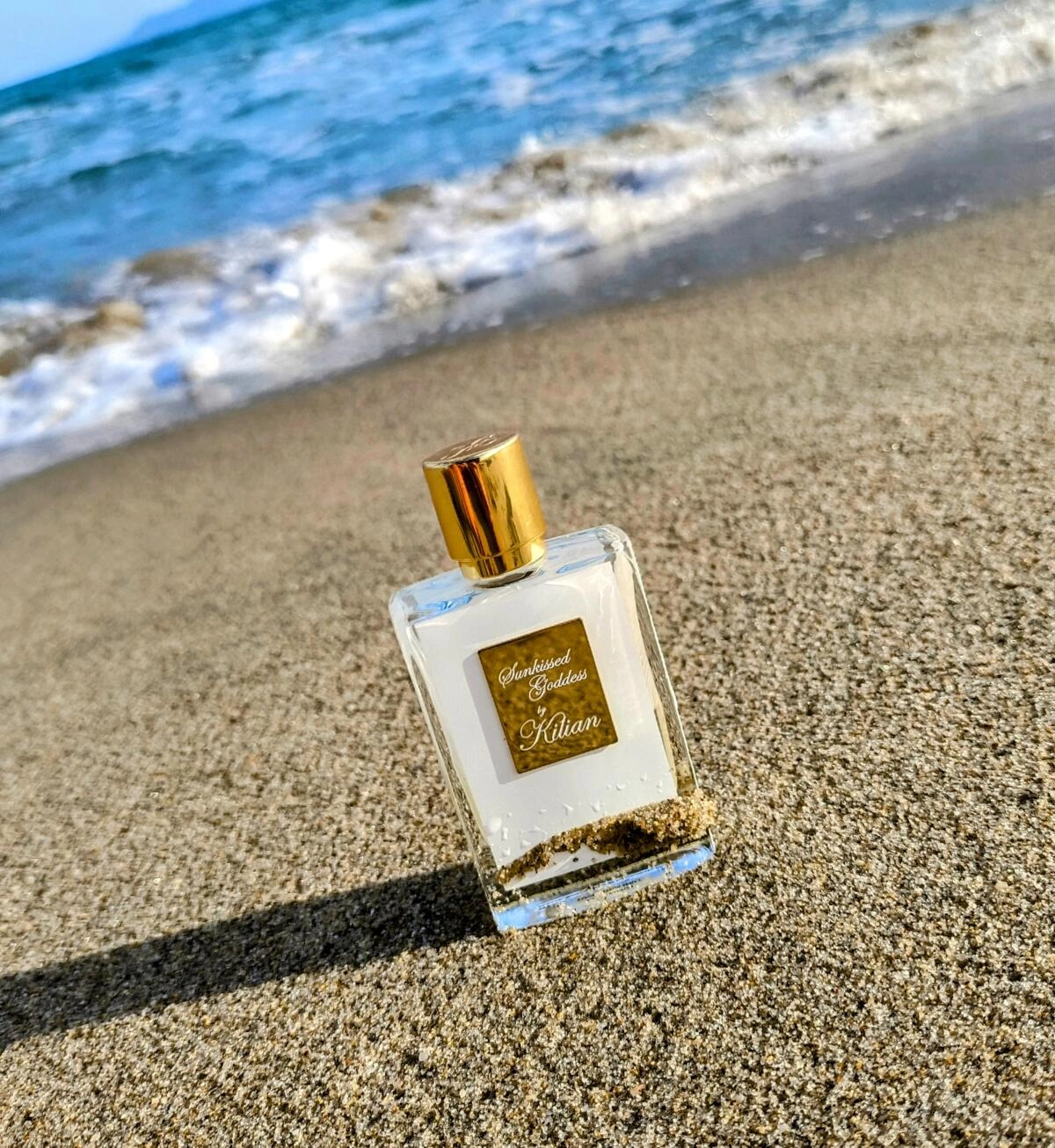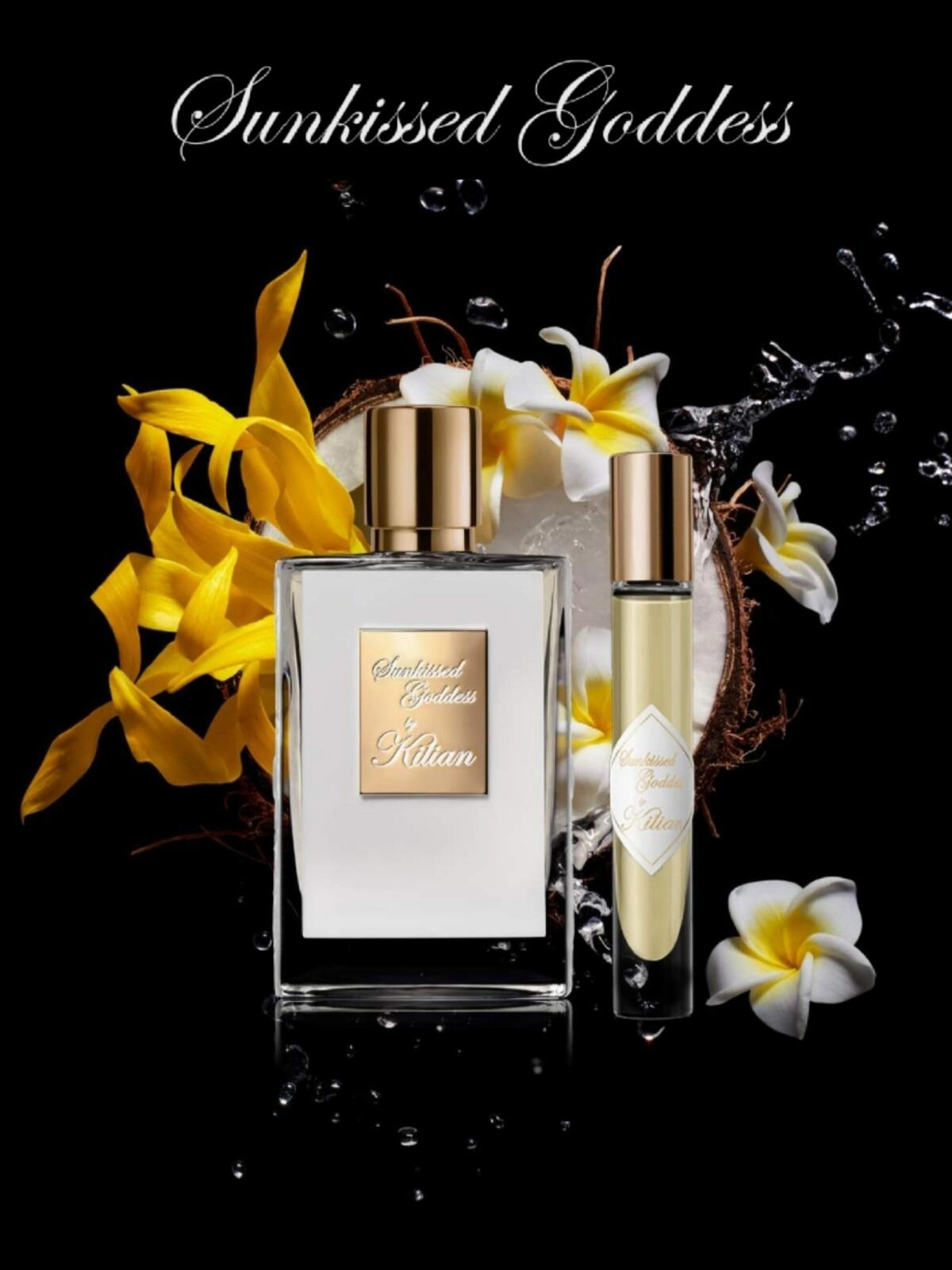 Яркая композиция Sunkissed Goddess была выпущена культовым французским брендом By Kilian в 2024 году в лимитированном количестве и вошла в коллекцию Les Fleurs Narcotices. Флаконы, созданные для этого аромата, выглядят как драгоценности, имея белое покрытие с золотистым оттенком, известное как «Луч света». Золотистые элементы украшены гравировкой щита Ахиллеса, символизируя защиту и соблазн.