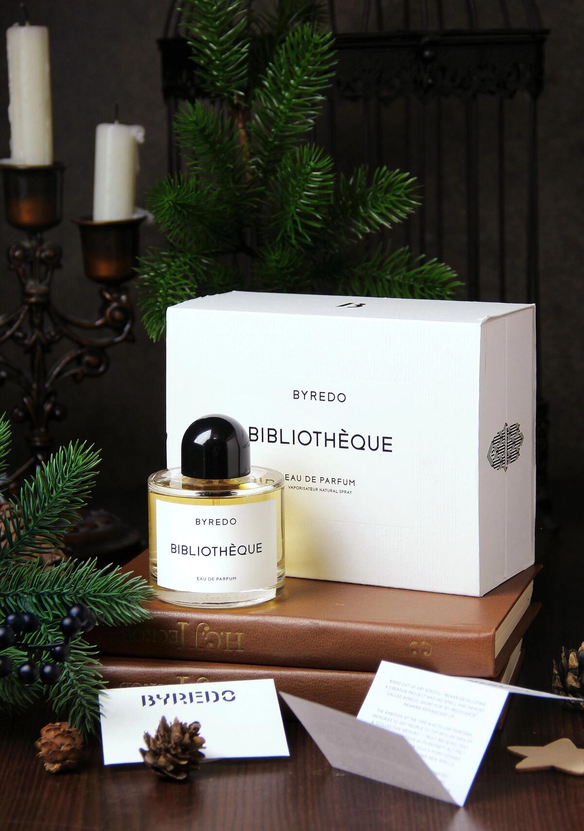 Ароматы – это не просто смеси запахов, а настоящие эмоциональные послания. Каждый парфюм имеет свою уникальную символику, создает определенное настроение и способен влиять на восприятие человека окружающими. Бренд Byredo, продолжая тему своей свечи Bibliothèque, в 2017 году представил унисекс-аромат с тем же названием. Создатели считают, что лучшие аспекты атмосферы библиотеки, вдохновения и умиротворения воплощаются в начальных нотах персика и сливы, переходящих в сердечные аккорды пиона и фиалки, а завершают композицию ноты кожаных переплетов, пачули, мускуса и сладкой ванили.