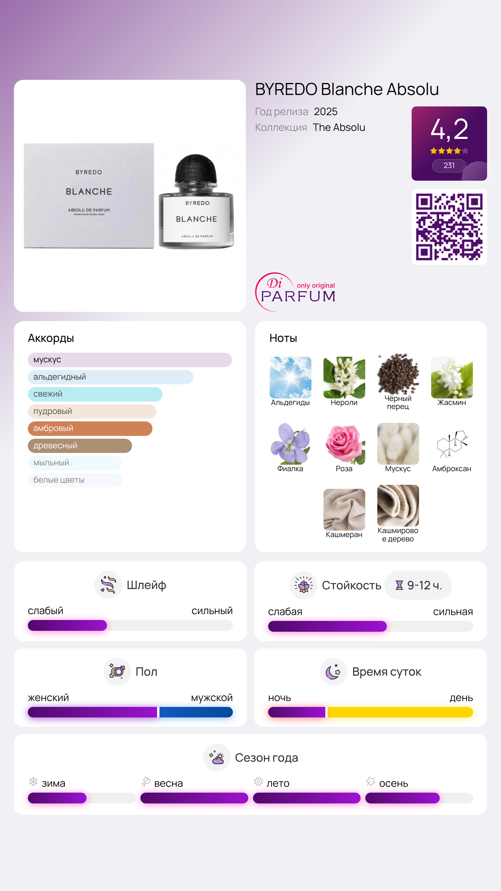 Blanche Absolu от Byredo - это новый цветочно-альдегидный аромат, который подойдет как для женщин, так и для мужчин. Запущенный в 2025 году, этот парфюм представляет собой идеальное сочетание свежести и элегантности.