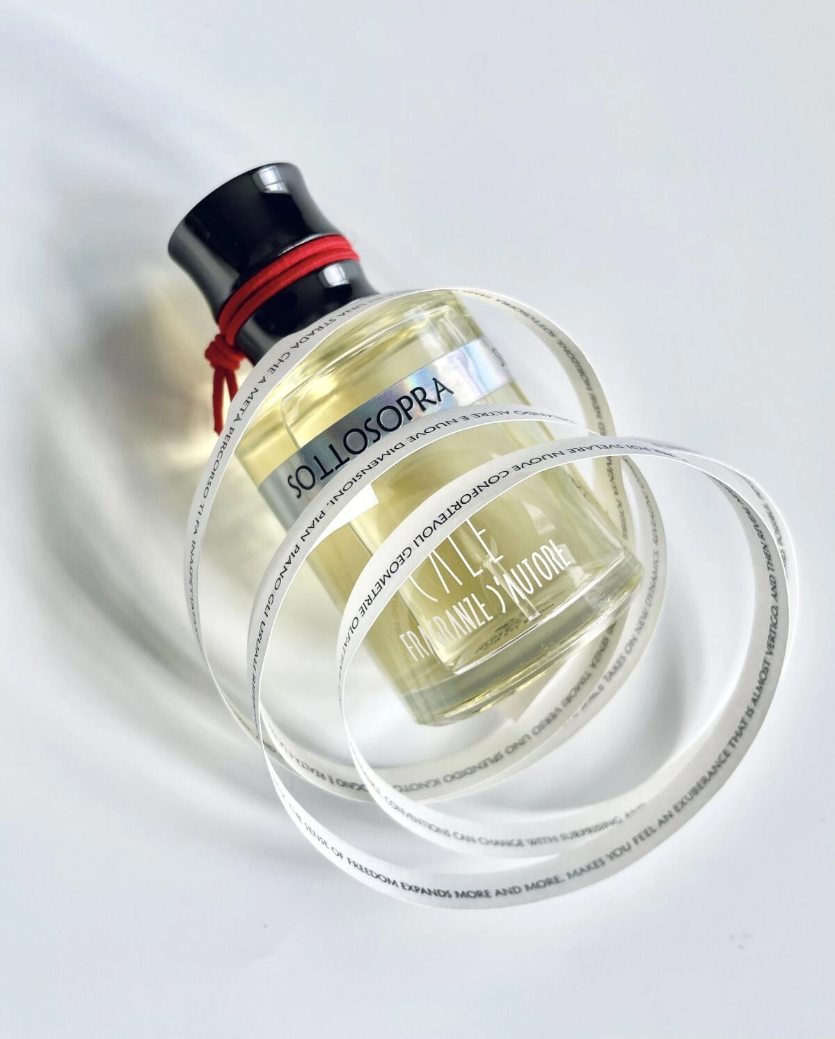 Эффектный шипровый аромат Cale Fragranze d’Autore Sottosopra представляет собой уникальное сочетание горечи и дымных нот. Выпуск произошел на миланском мероприятии Esxence 2018 и сопровождался музыкальным произведением Филиппа Абюсси, вдохновленным марокканским танцем. Музыка была создана для улучшения восприятия аромата и его глубинного понимания.