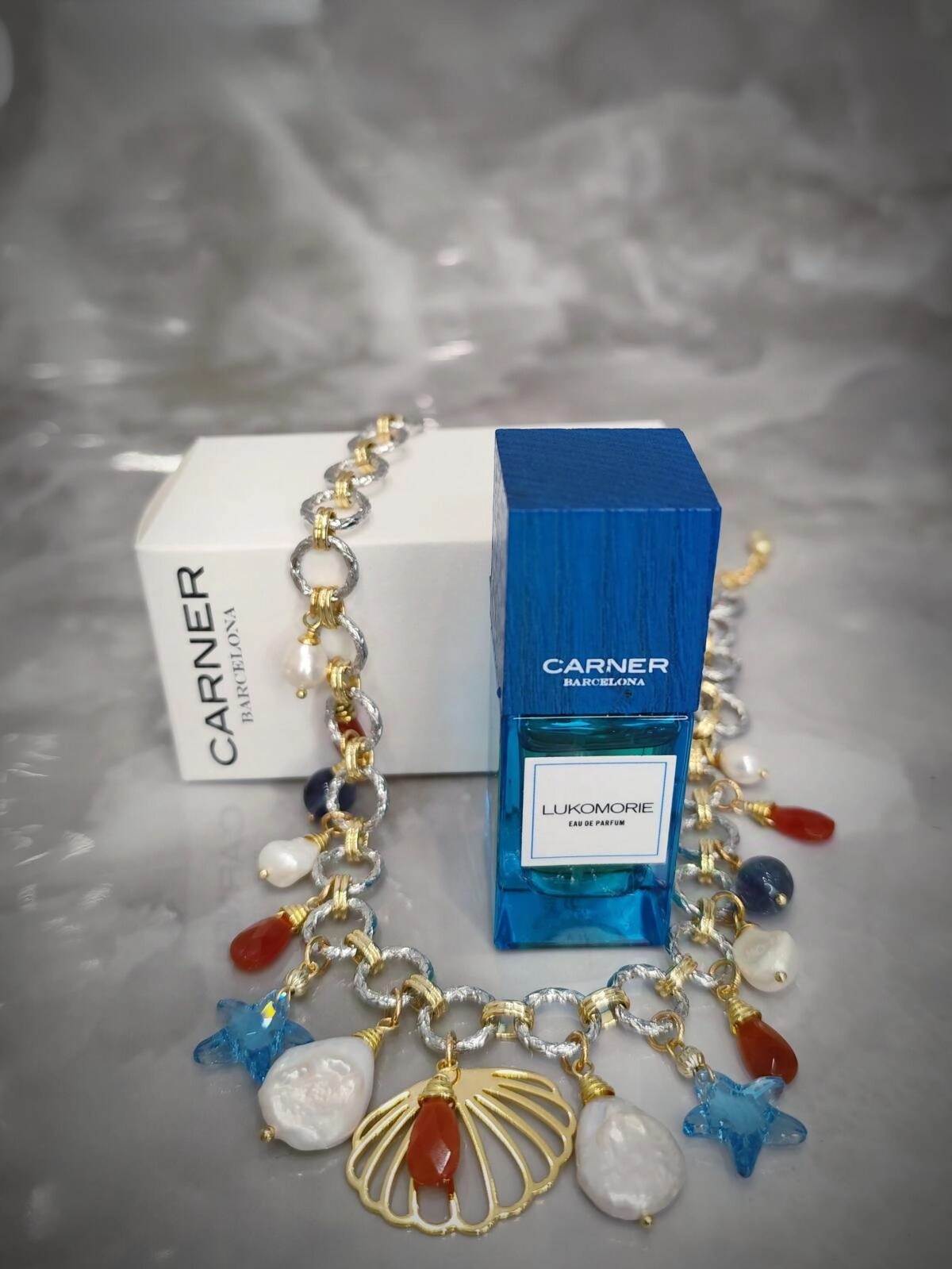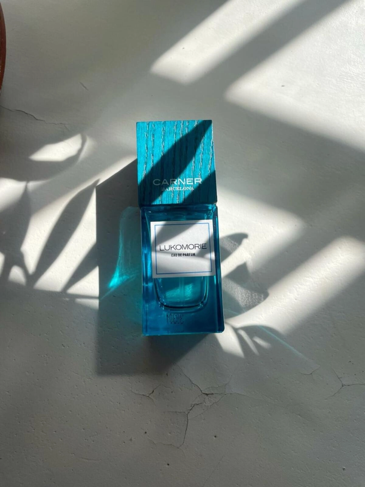 Первоначальные ноты ароматов освежают цитрусовыми, среди которых выделяются горький грейпфрут, терпкий итальянский бергамот и ледяной лемонграсс. Сердце аромата наполнено ягодами ежевики, тонизирующей розовой водой и острым розовым перцем. Заключительные ноты Carner Barcelona Lukomorie представляют собой цветочно-мускусный аромат с легкими винными оттенками семян гибискуса, усиливаемые мускусом и подчеркнутые древесными и камфорными нотами пачули.
