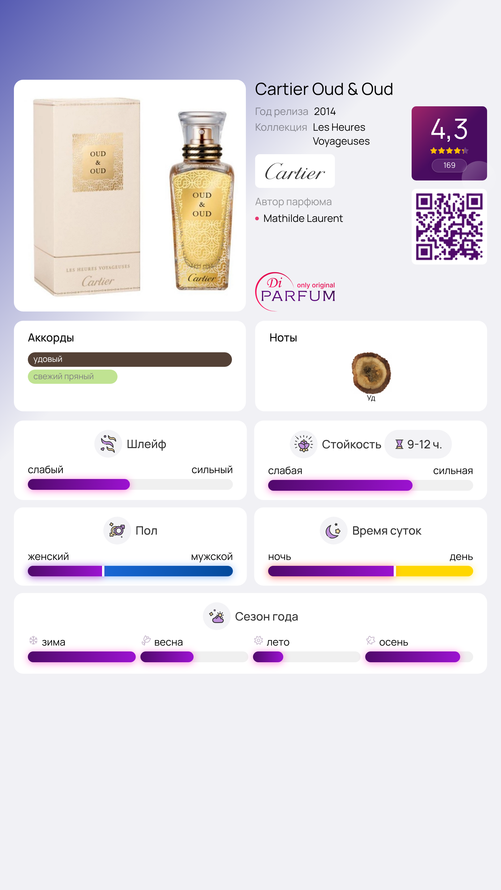 Бренд Cartier в своей коллекции Les Heures de Parfum, посвященной уду, предлагает три изысканных аромата, среди которых выделяется Oud & Oud. Создательница этого аромата, парфюмер Mathilde Laurent, черпала вдохновение на Востоке. Восточные ноты, насыщенные и загадочные, стали основой этой композиции.