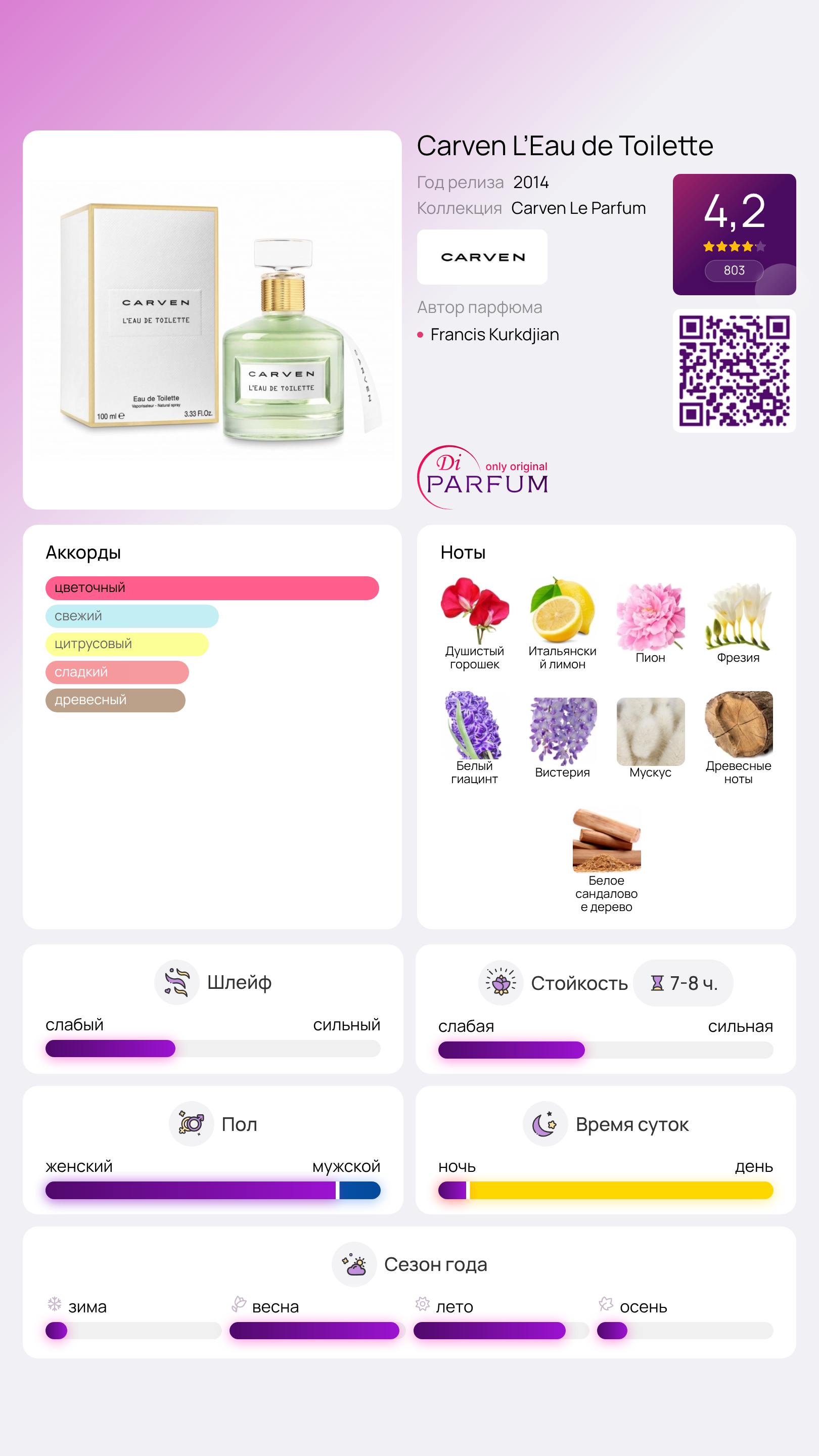 Аромат L’Eau de Toilette от Carven способно воскресить в памяти самые яркие мгновения лета, благодаря мастерству Francis Kurkdjian, который подобрал для него лучшие компоненты.