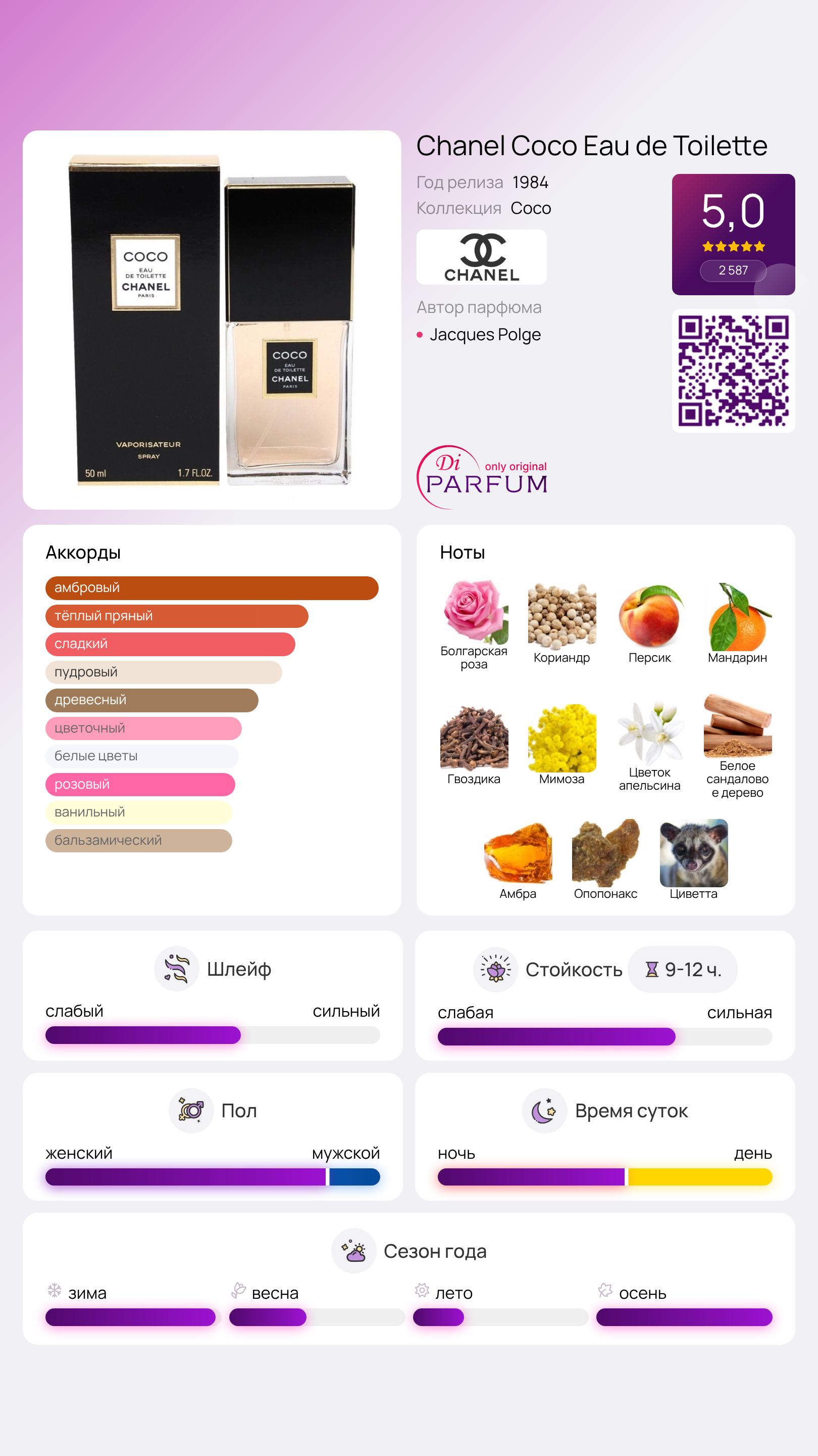 Chanel давно завоевал статус легенды и занял свое место в истории мировой моды. Коллекции этой марки представляют собой настоящие шедевры, которые станут ориентиром для будущих дизайнеров и парфюмеров. Аромат Coco Eau de Toilette, выпущенный в 80-х годах, продолжает оставаться желанным приобретением для ценителей.