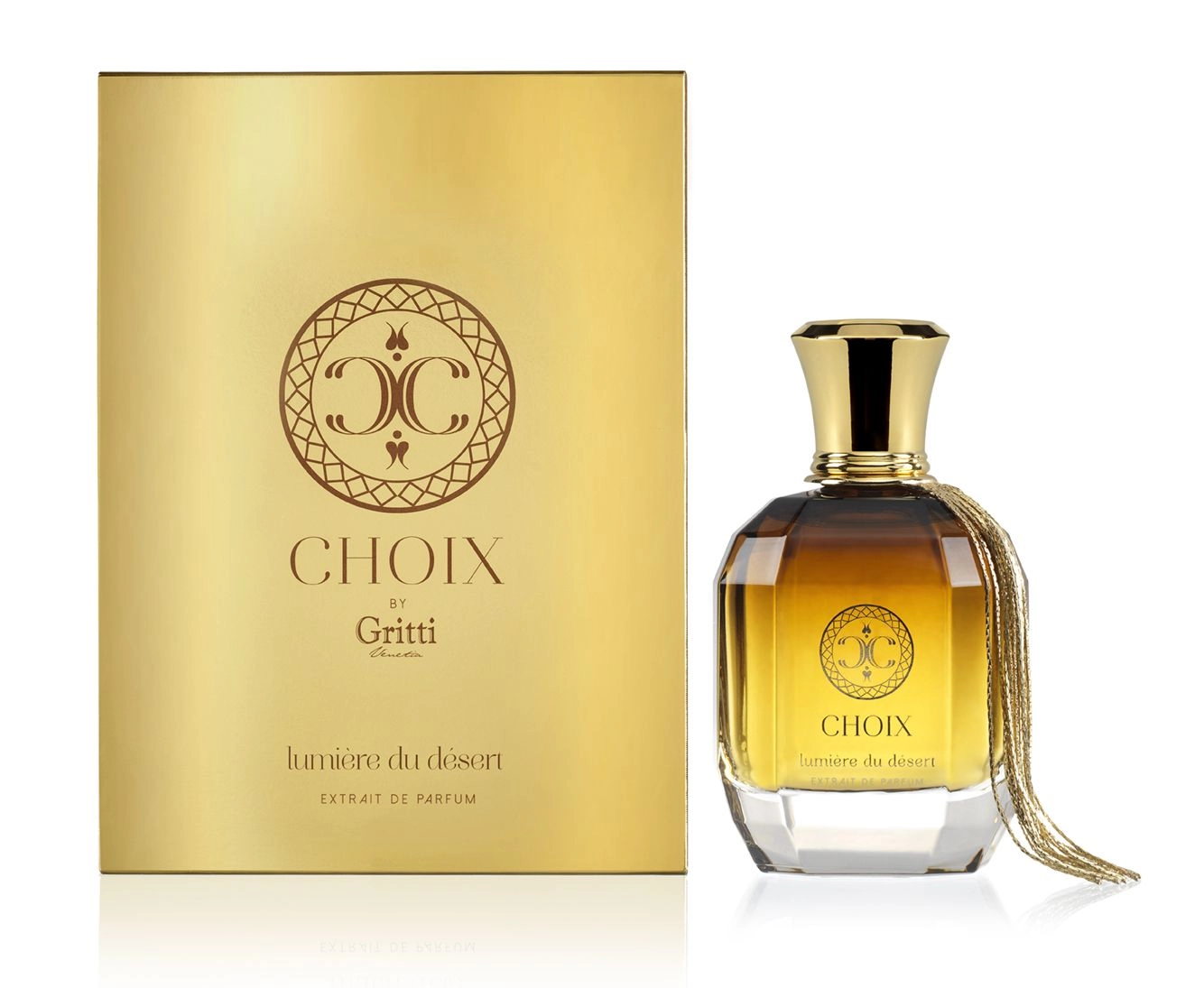 Роскошная композиция Lumiere Du Desert была вдохновлена ранним утренним полетом над Рубаль-Хали, когда пустынные дюны сверкают в золотом сиянии под восходящим солнцем. Духи были созданы итальянским брендом в 2018 году и входят в ближневосточную коллекцию. Изящный флакон с гранями дополнен золотой кисточкой, а форма крышки ассоциируется с фонтаном, что придает дизайну особую элегантность.