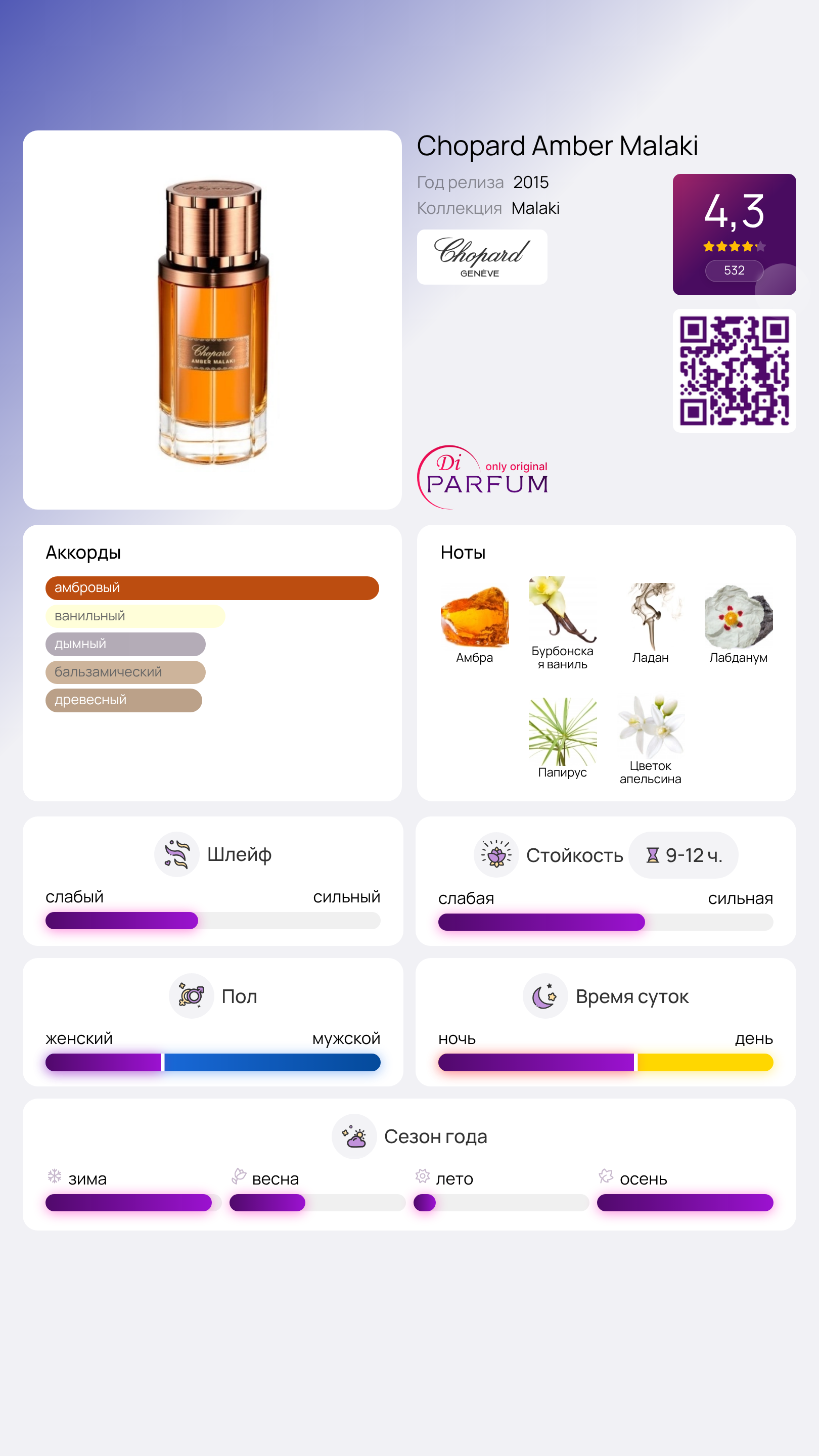 Аромат Amber Malaki обладает такой гармонией, что его действительно можно считать идеальным произведением парфюмерного искусства.