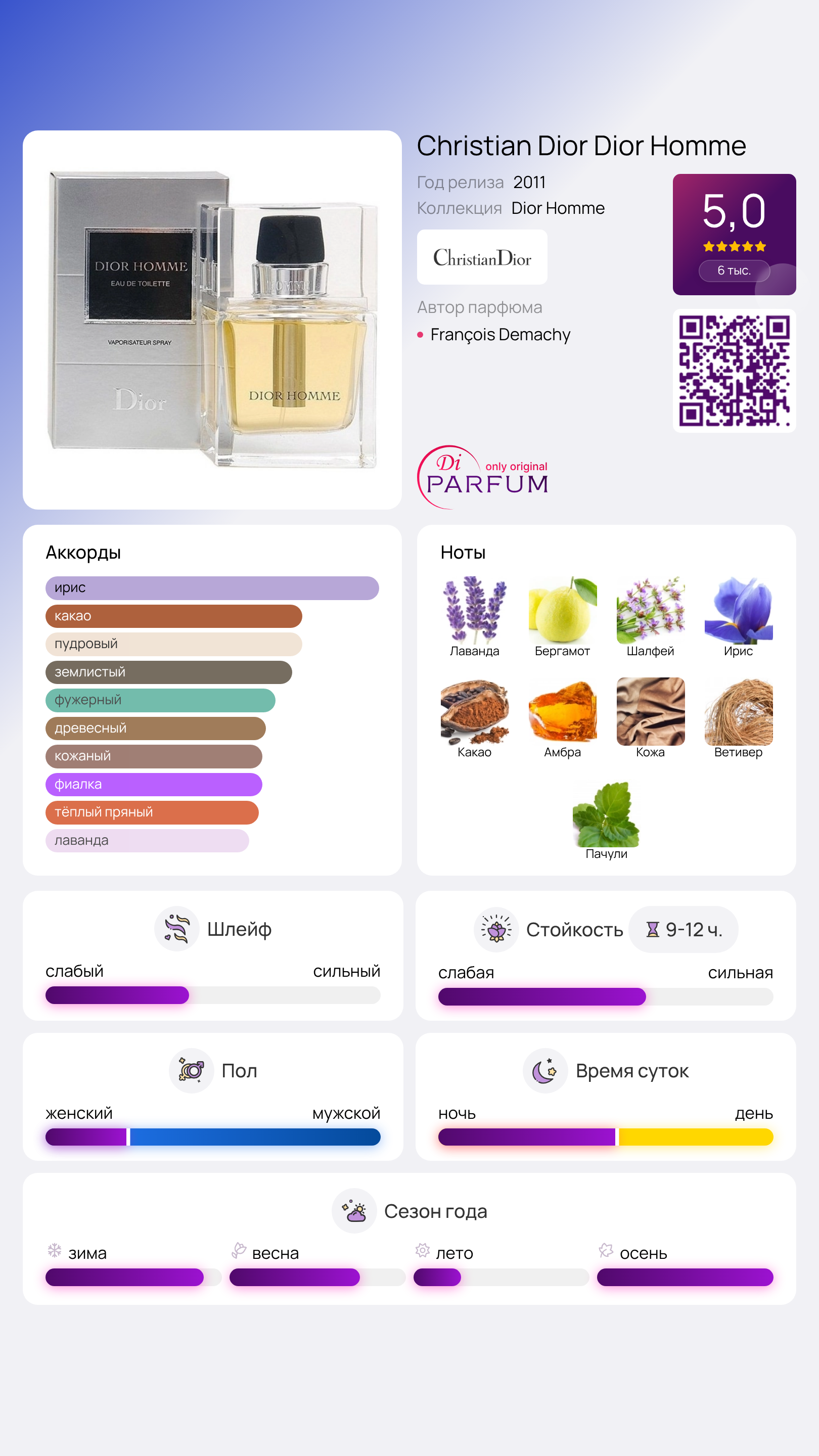 Парфюм Dior Homme от Christian Dior Parfum предназначен для элегантных и самодостаточных мужчин, которые умеют сочетать романтику и мужественность. Он отражает современные тенденции в моде, оставаясь при этом верным классическим стандартам.