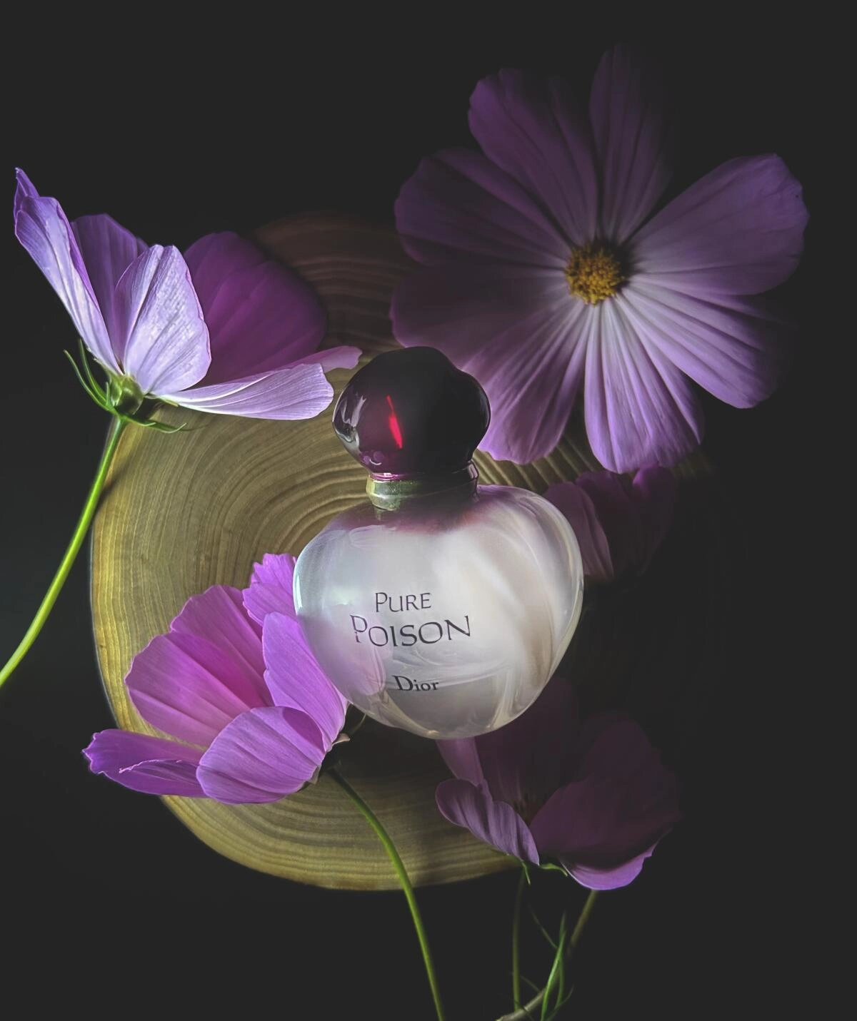 Мужчины попадают под ее обаяние и восхищаются ее грацией, в то время как она лишь дразнит их своим вниманием. Чарующий и сильный Pure Poison создается благодаря комбинации нот жасмина, гардении, апельсина и амбры, калабрийского бергамота и сандала, а также сицилийского мандарина и белого мускуса. Эта гармония формирует таинственный, провокационный, тёплый и дерзкий аромат.