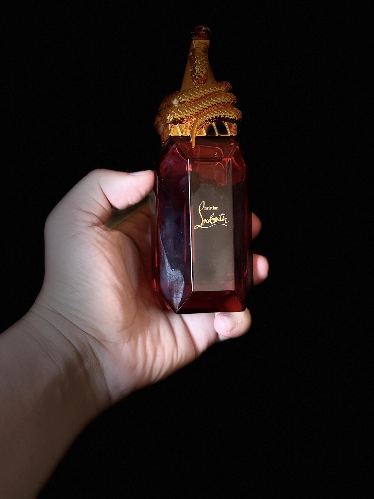 Гипнотический эликсир древесных и восточных нот от Christian Louboutin, известный как Loubiprince, выражает жизненную страсть. Золотистая крышка выполнена в форме загадочной змеи, обвивающей роскошную пирамиду, голова которой повторяет контуры знаменитого шпильки Лабутена. Убедительный и привлекательный дизайн, а также глубокий бордовый цвет флакона говорят о том, что внутри скрывается истинное парфюмерное сокровище.