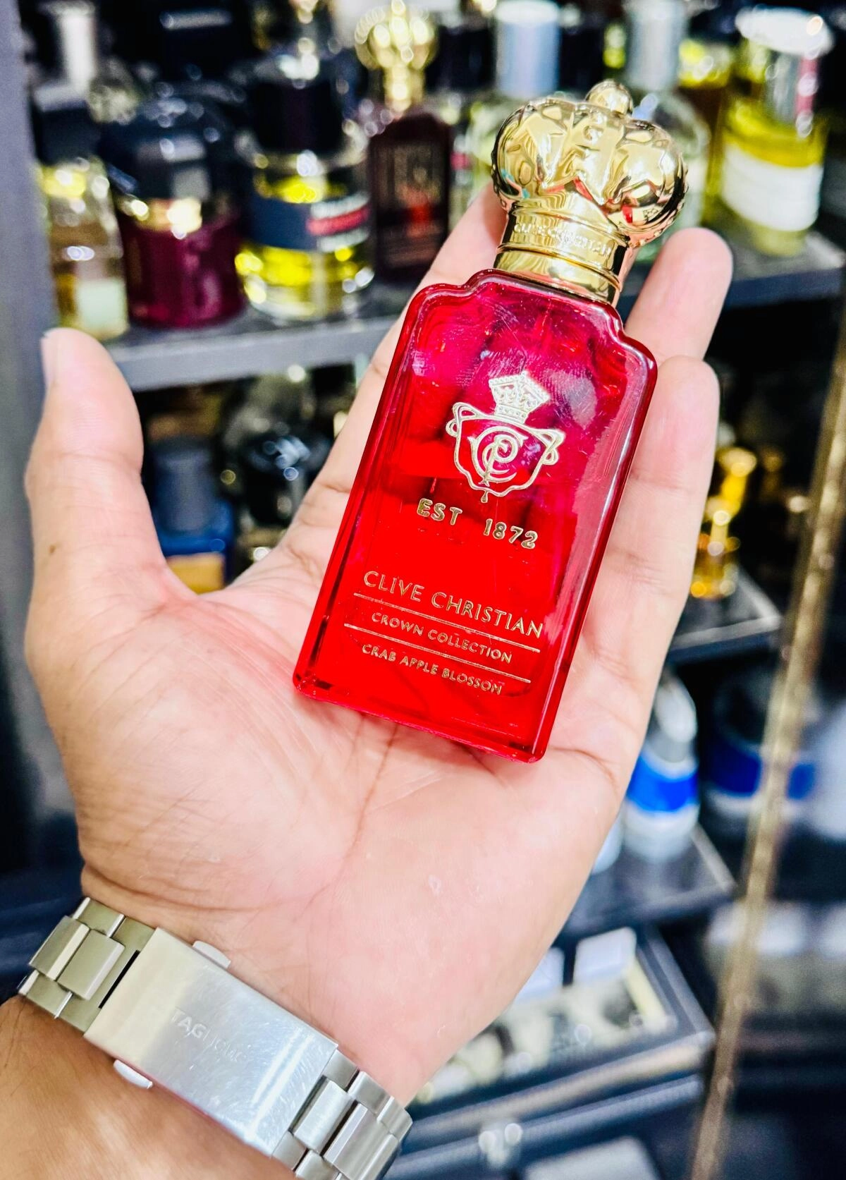 Аромат Clive Christian Crab Apple Blossom предлагает освежающее зелёное наслаждение, отражающее свойственный весеннему цветению дух. Эти концентрированные духи состоят из 151 ингредиента и были представлены в 2020 году как часть коллекции, представляющей собой современное переосмысление исторических парфюмерных рецептур от аристократической марки.