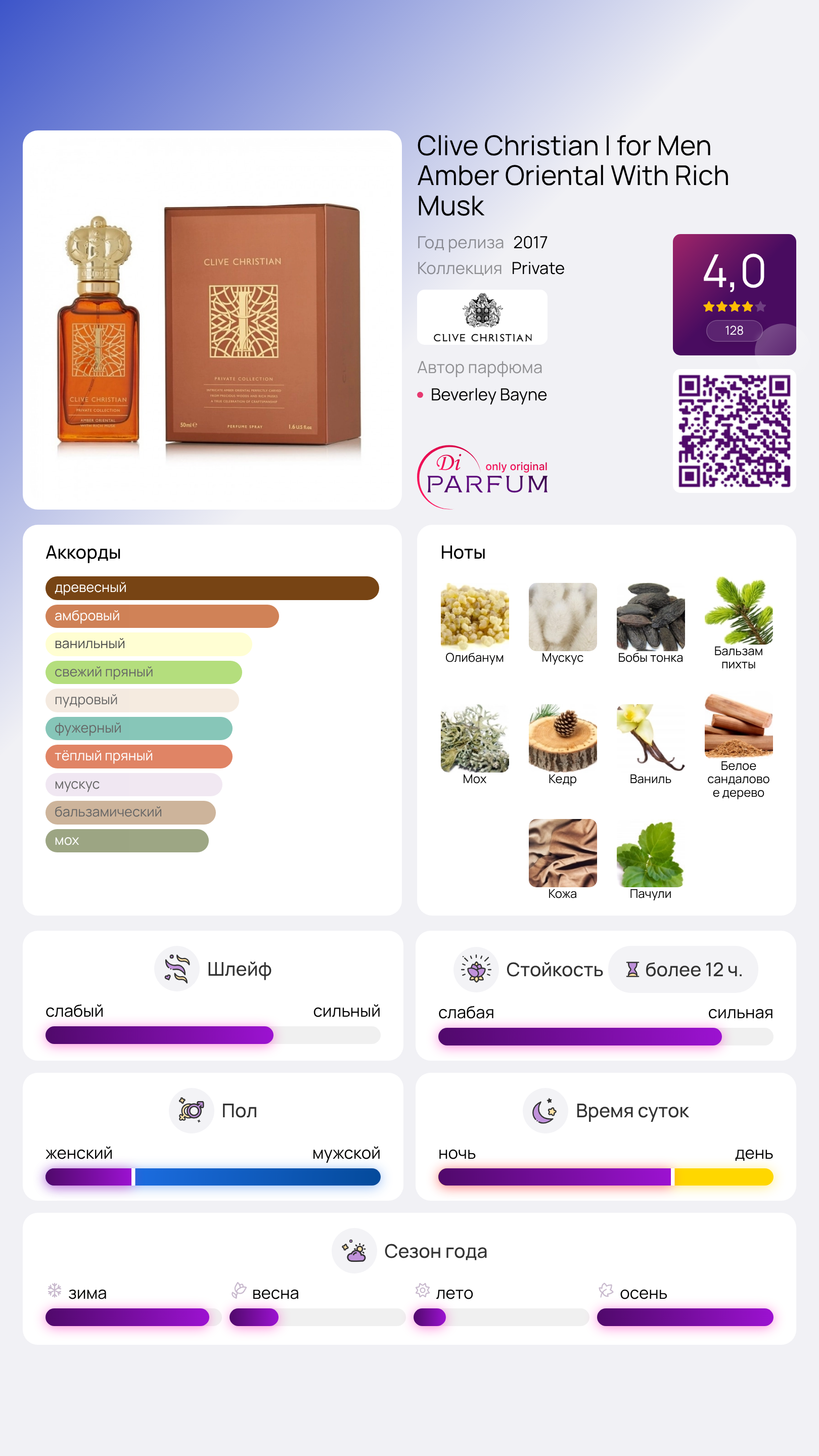 Британская нишевая марка Clive Christian представляет новый аромат из своей частной коллекции - I for Men Amber Oriental With Rich Musk. Этот парфюм связан с именем основателя компании Clive, поскольку он отражает третью букву его имени и представляет собой восточную древесную композицию.