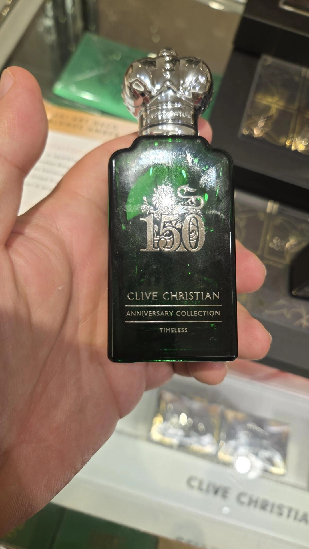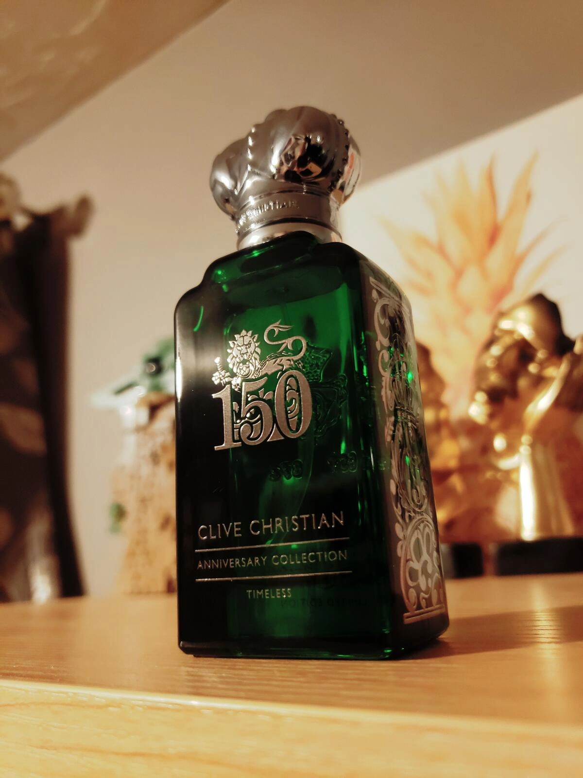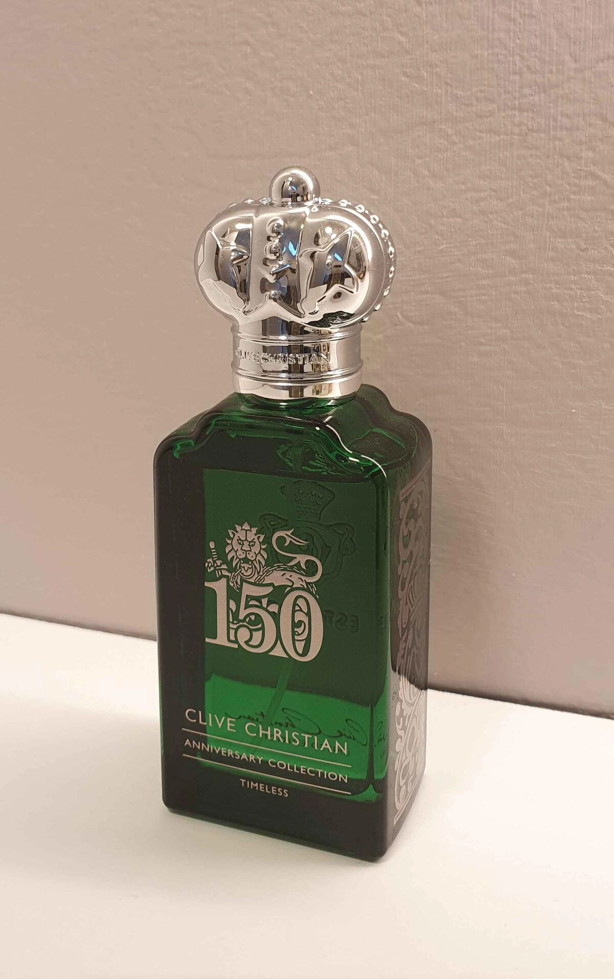 Согласно информации из пресс-релиза, уникальная композиция Timeless от Clive Christian является современным взглядом на одеколон викторианской эпохи, созданный в 1837 году. Эта интерпретация классики, неподвластной времени, была впервые представлена в 2022 году в рамках юбилейного выпуска. Флакон темно-зеленого цвета украшен серебристым декором и колпачком, выполненным в виде короны.