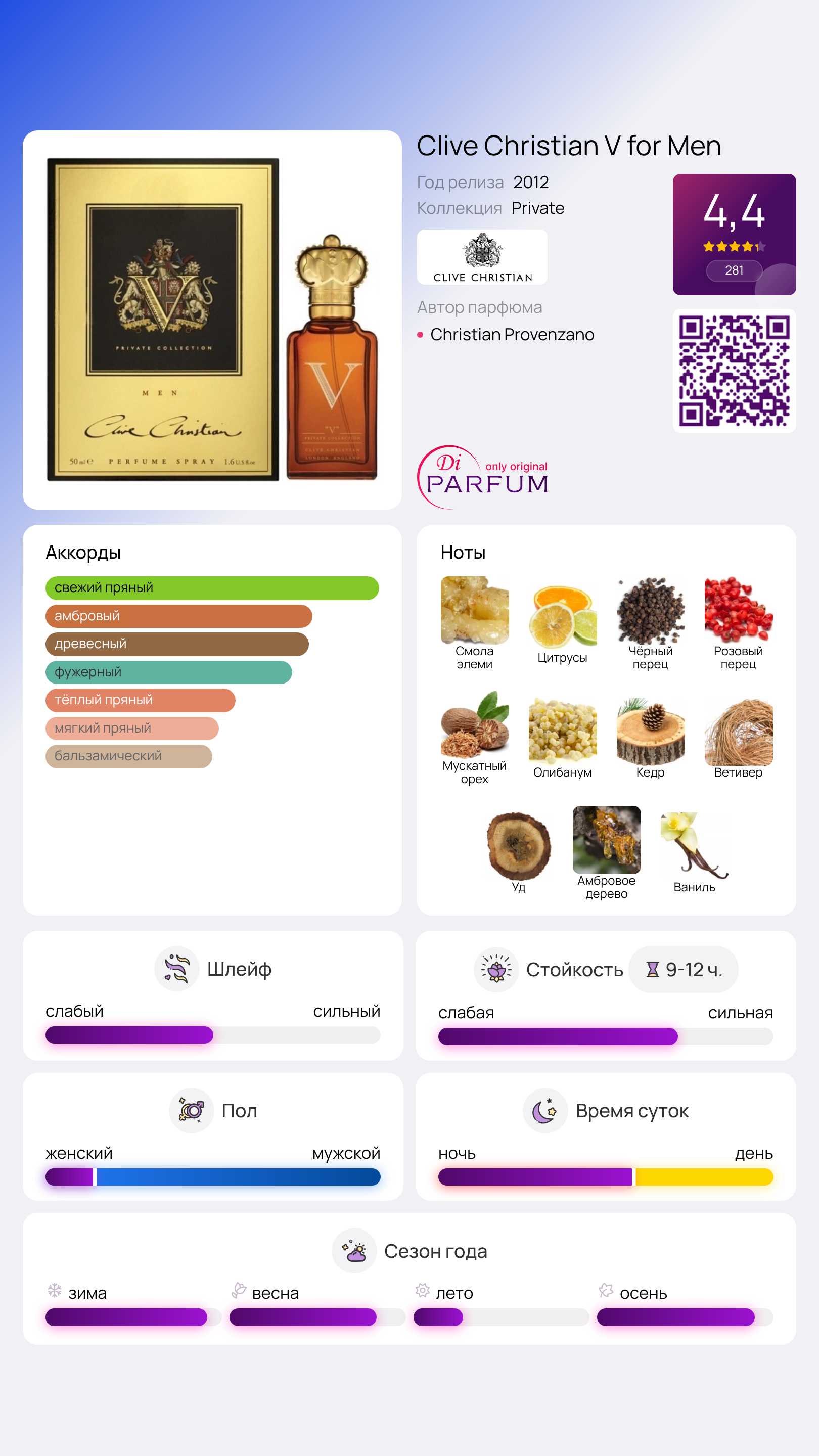 Аромат V for Men от британского бренда Clive Christian представляет собой уникальное древесное воплощение, созданное для мужчин, обладающих глубиной и благородством, свойственными уверенным и харизматичным личностям.
