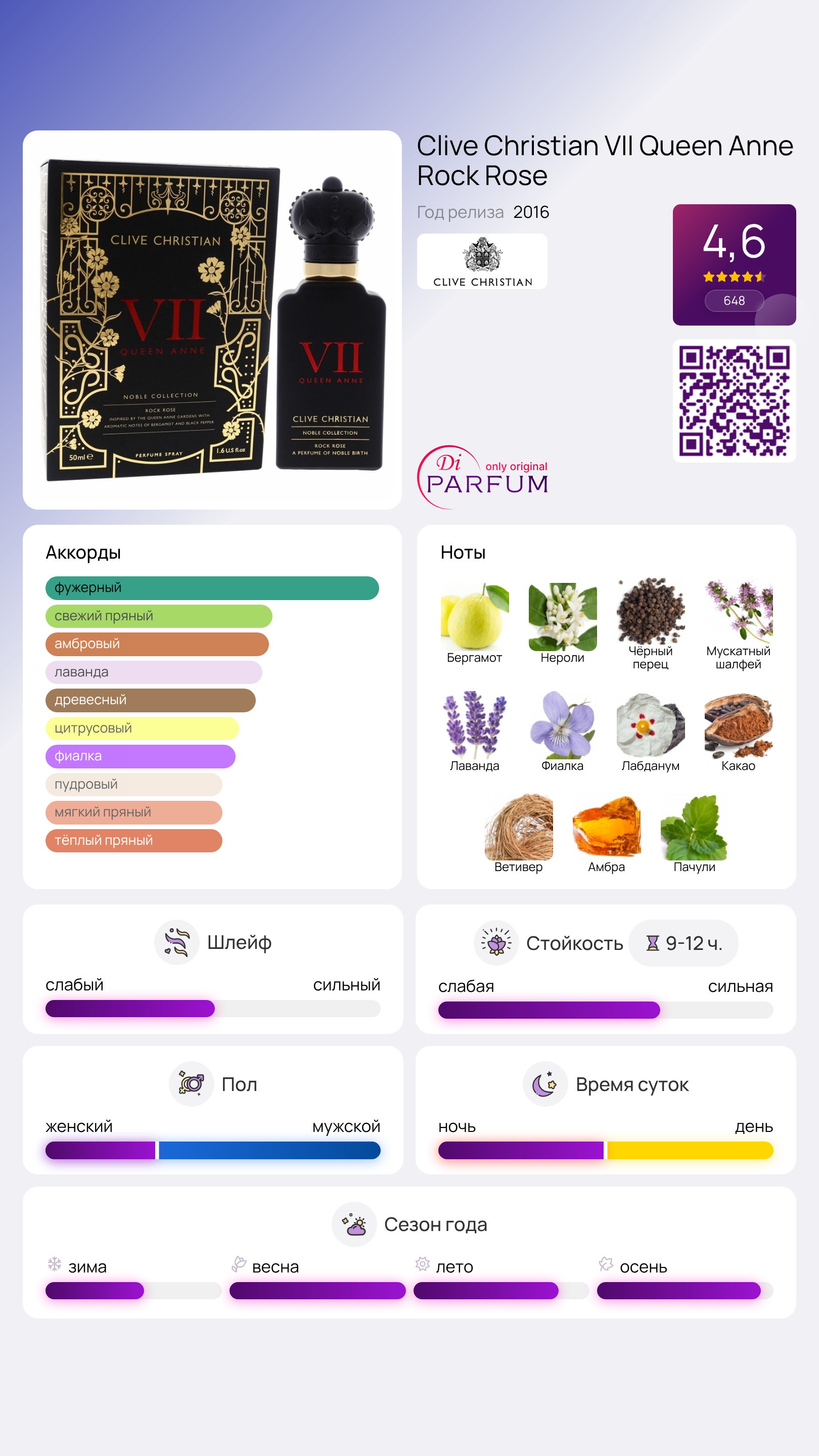 Аромат Clive Christian VII Queen Anne Rock Rose обладает мощной и уникальной энергетикой, это не просто комбинация редких и высококачественных ингредиентов, а скорее выражение определённого образа жизни и статуса. Уникальный готический черный флакон в стиле Клайва выделяется своей великолепной крышкой в виде короны и алая надписью, напоминающей королевскую мантию.