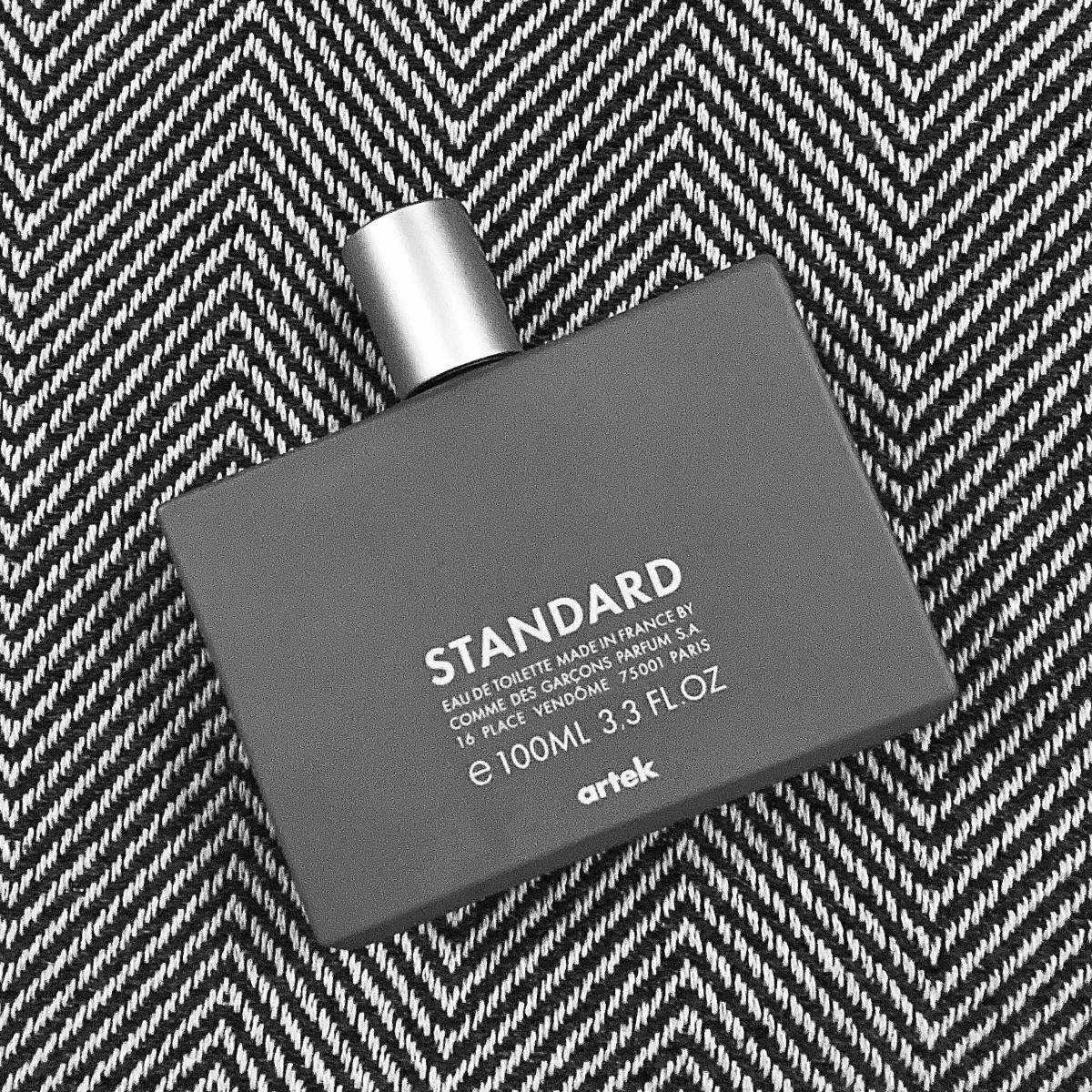 Парфюмерная композиция Standard была создана домом Comme des Garçons в партнерстве с финским производителем мебели Artek. Этот аромат воплощает философию обеих компаний, основанную на стремлении к экспериментам и уникальному восприятию мира. Строгий дизайн флакона хранит аромат, который представляет собой смешение синтетических и натуральных ингредиентов.