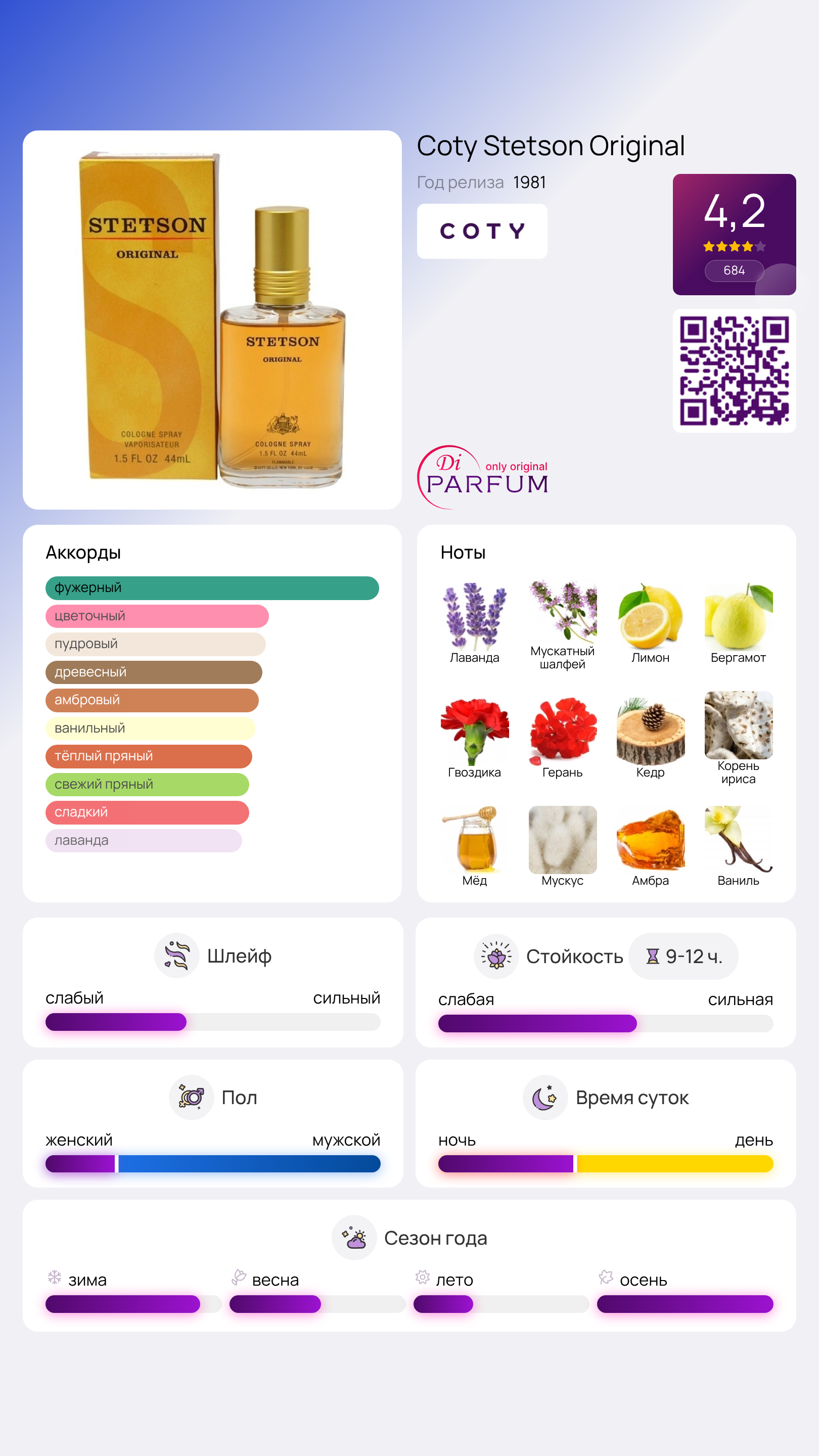 Аромат Stetson Original отлично дополнит как деловой костюм, так и станет прекрасным выбором для вечерних прогулок в повседневной обстановке.