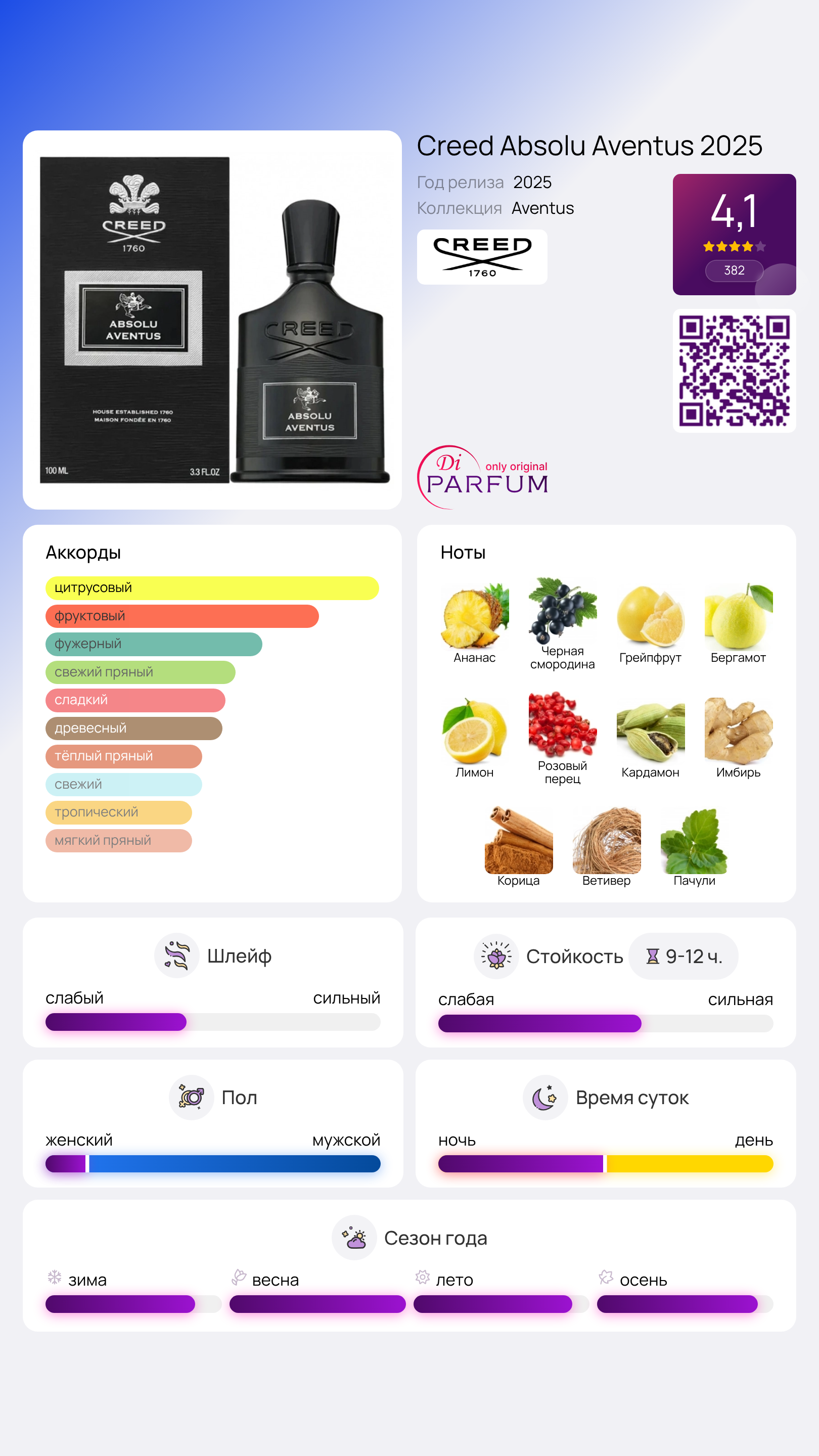 Абсолют Авентус 2025 от Creed — это новое шипрово-фруктовое мужское парфюмерное произведение, представленное в 2025 году и ставшее частью знаменитой коллекции Aventus. Этот аромат привлекает внимание своей уникальной композицией, которую невозможно не заметить.