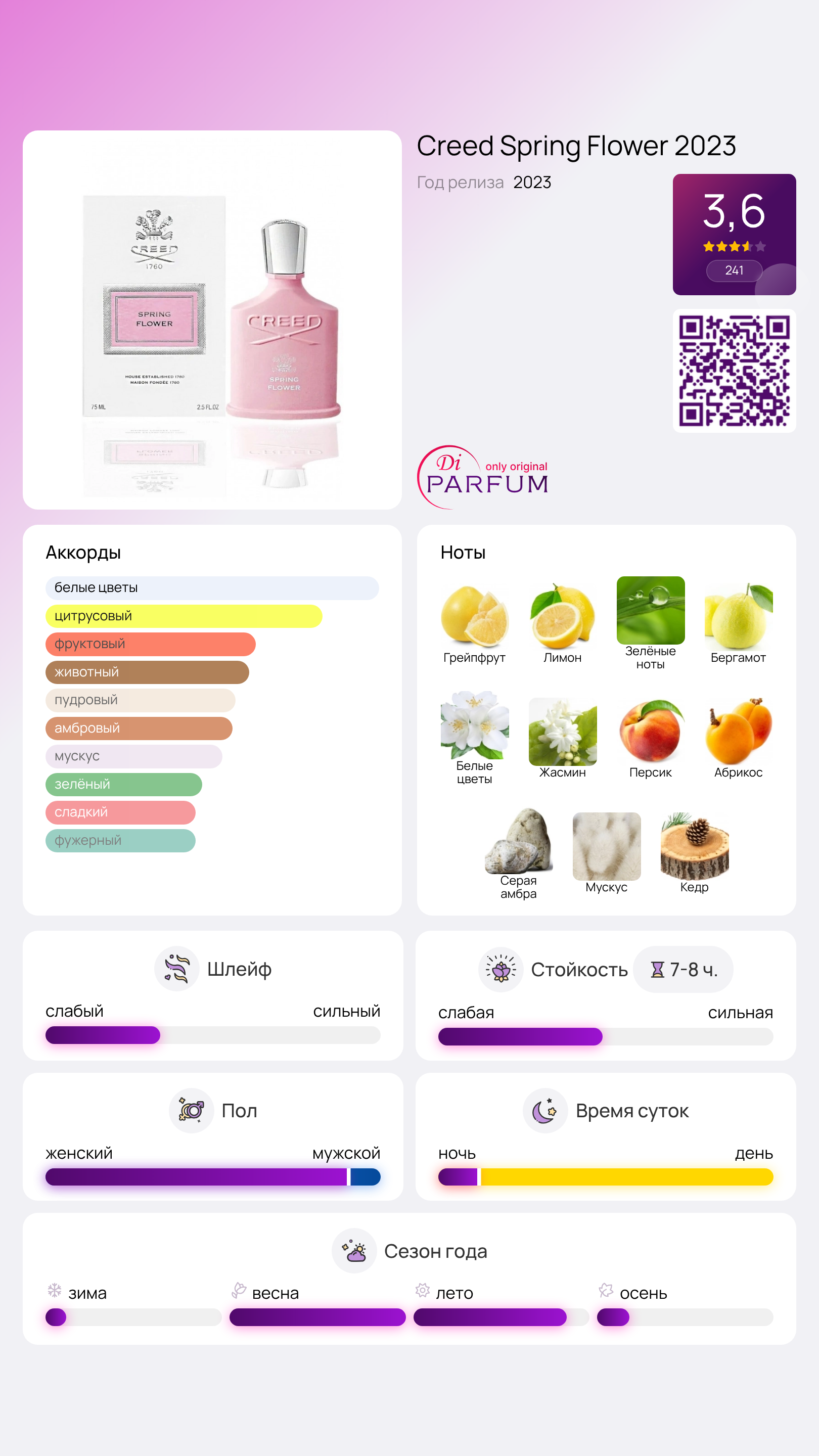Spring Flower 2023 от Creed — это новый цветочно-фруктовый аромат для женщин, который был выпущен в 2023 году. Он идеально подходит для весеннего настроения, наполняя день свежестью и нежностью.