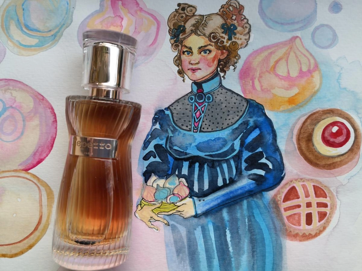 Начальная нота раскрывается с игривым макаруном, наполненным естественным малиновым вкусом. Сердце аромата, floral по своей природе, трансформирует сладкий десерт в великолепие сахаристой выпечки. Травяная фрезия и экзотическая магнолия добавляют свежести и женственности. Чувственный характер букета подчеркивают весенний пион, ванильный гелиотроп и медовый жасмин.