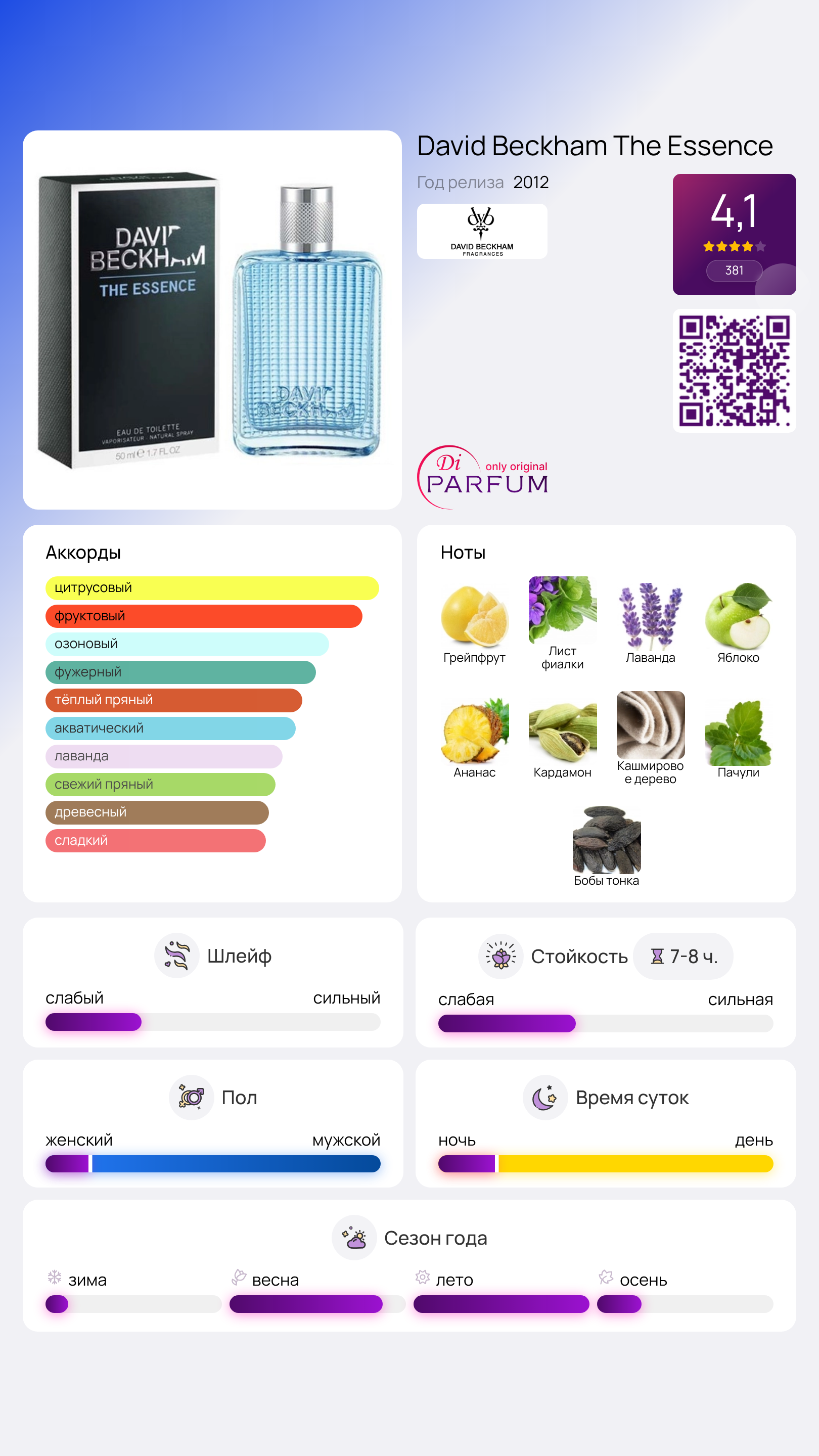 Аромат Essence от Дэвида Бекхэма несет в себе удивительный шарм, который характеризует этого легендарного спортсмена. Этот парфюм идеально подходит для динамичных, решительных и успешных мужчин.