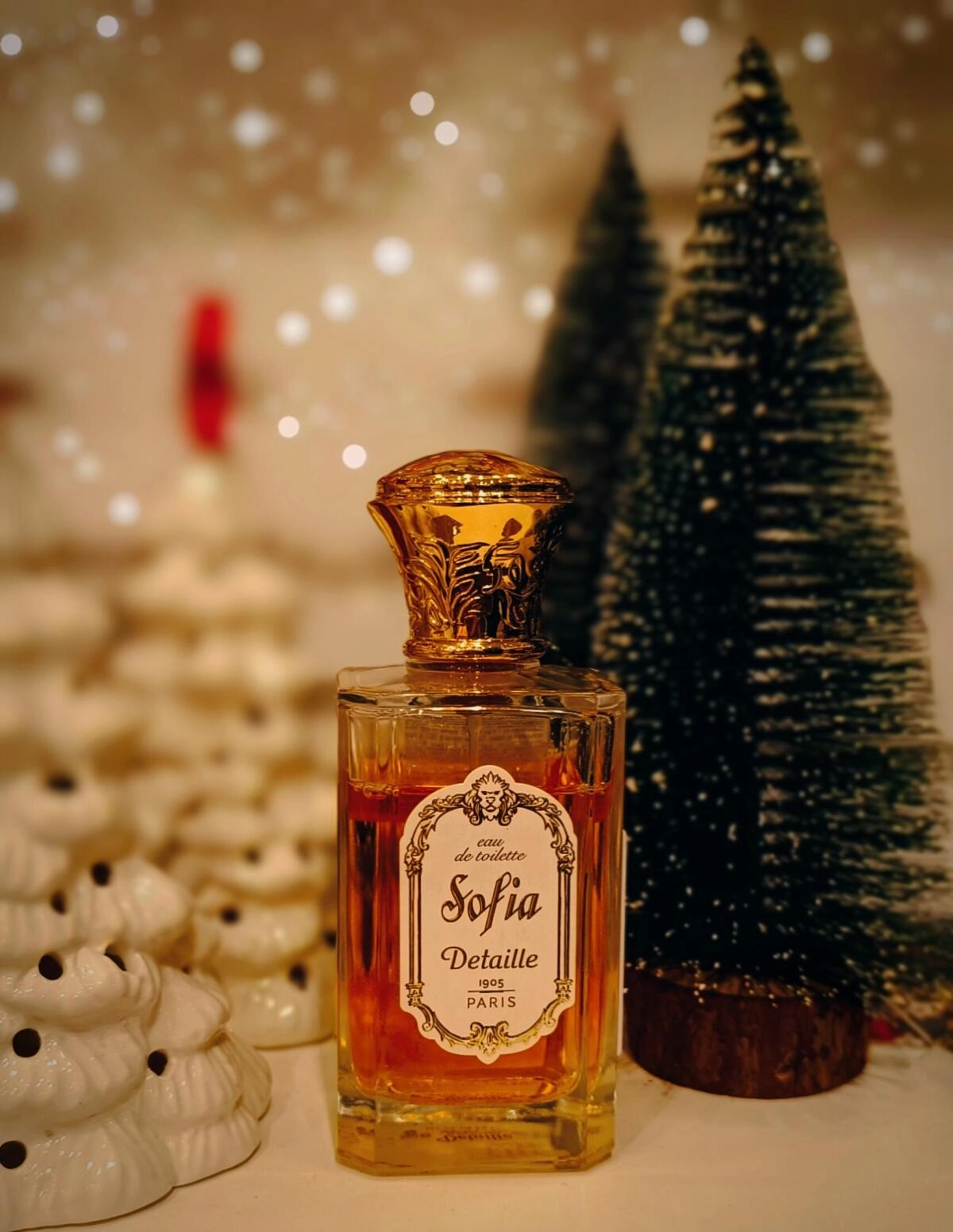 Aромат Sofia от Detaille подчеркивает уникальность женственного образа. Дизайн флакона является настоящим памятником парфюмерии Франции, он напоминает хрустальный бокал с плавными формами и сбалансированными пропорциями. Золотистый колпачок с зеркальной отделкой украшен изысканными арабесками, придавая сосуду вид архитектурного произведения в стиле арт-деко.