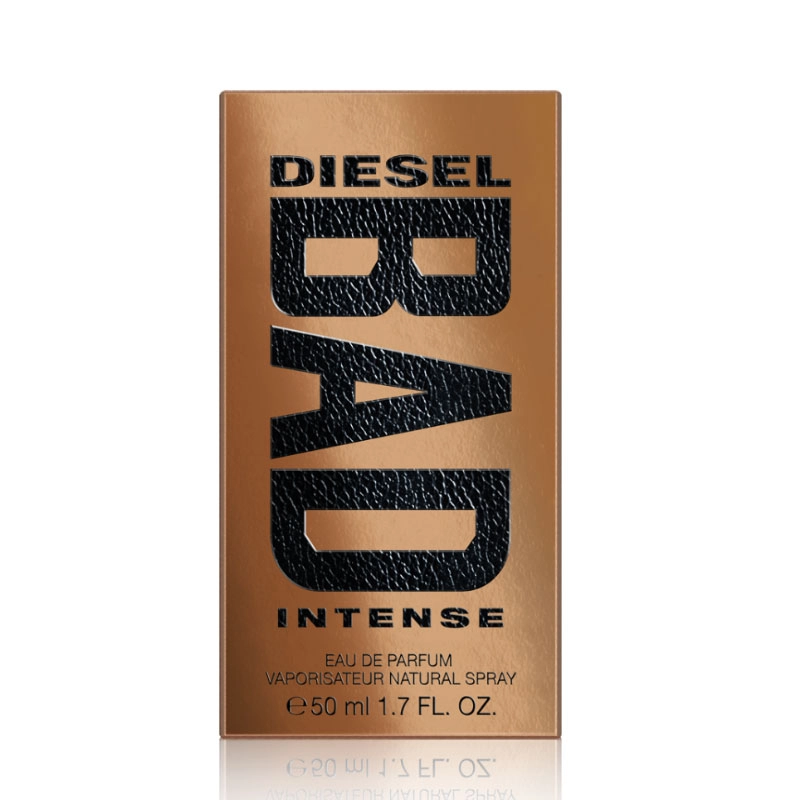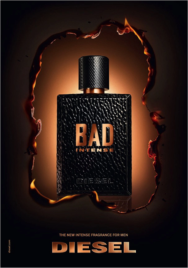 Парфюм Bad Intense является продолжением аромата Bad, который вышел в 2017 году. Этот фланкер, как и его предшественник, олицетворяет дух бунта, стремление к свободе и любовь к приключениям. Формула нового аромата более насыщенная и интенсивная. В древесной пряной пирамиде преобладает высокая концентрация табака и специй, что придает ей особую темпераментность. Начальные ноты представлены мускатным орехом, корицей и бергамотом. В сердце композиции находится черная икра, а в базе белый табак соединяется с древесными акцентами.