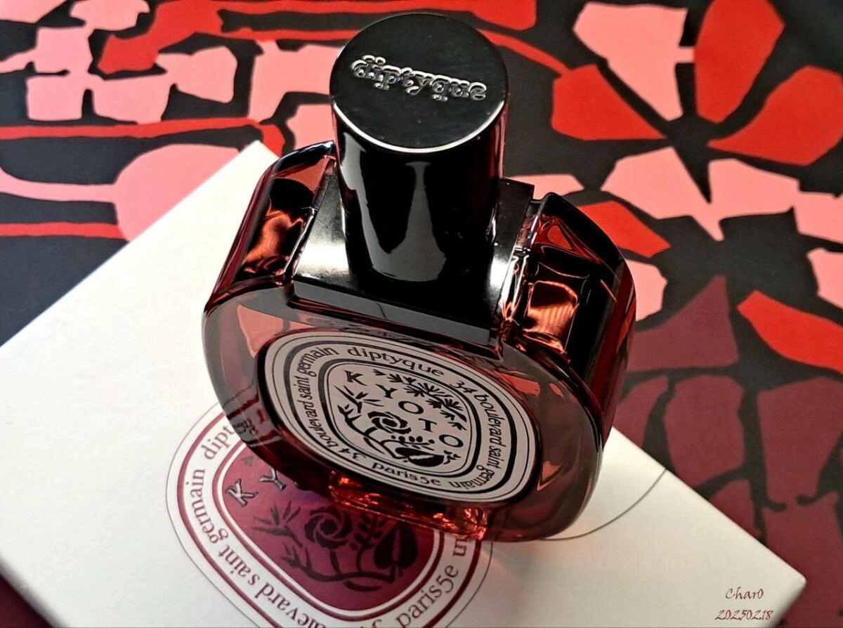 Влажный ветер приносит с собой сладость бордовых лепестков, заполняя пространство мягким уютом и послевкусием страсти, растворившейся в предутреннем тумане. Первые солнечные лучи добавляют терпкость бальзамического ветивера, который, с лёгким шипением, гасит тлеющий восково-дымный фитиль ладанных свечей, оставляя загадку, именуемую Diptyque Kyoto.