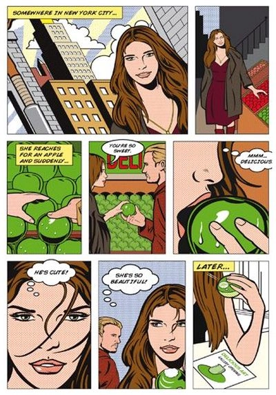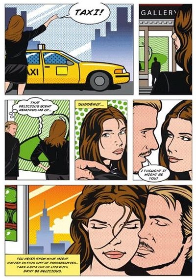Знаменитый аромат от Donna Karan, обладающий динамичной и насыщенной природой, представлен в оригинальной упаковке, напоминающей зеленое яблоко – символ Нью-Йорка и выполненной в стиле поп-арт. Рекламные материалы и комиксы DKNY Be Delicious Pop Art были разработаны талантливым американским иллюстратором Брэдом Хаманном. Они повествуют о приключениях стильной нью-йоркской женщины, которая с радостью использует все прелести своего города.