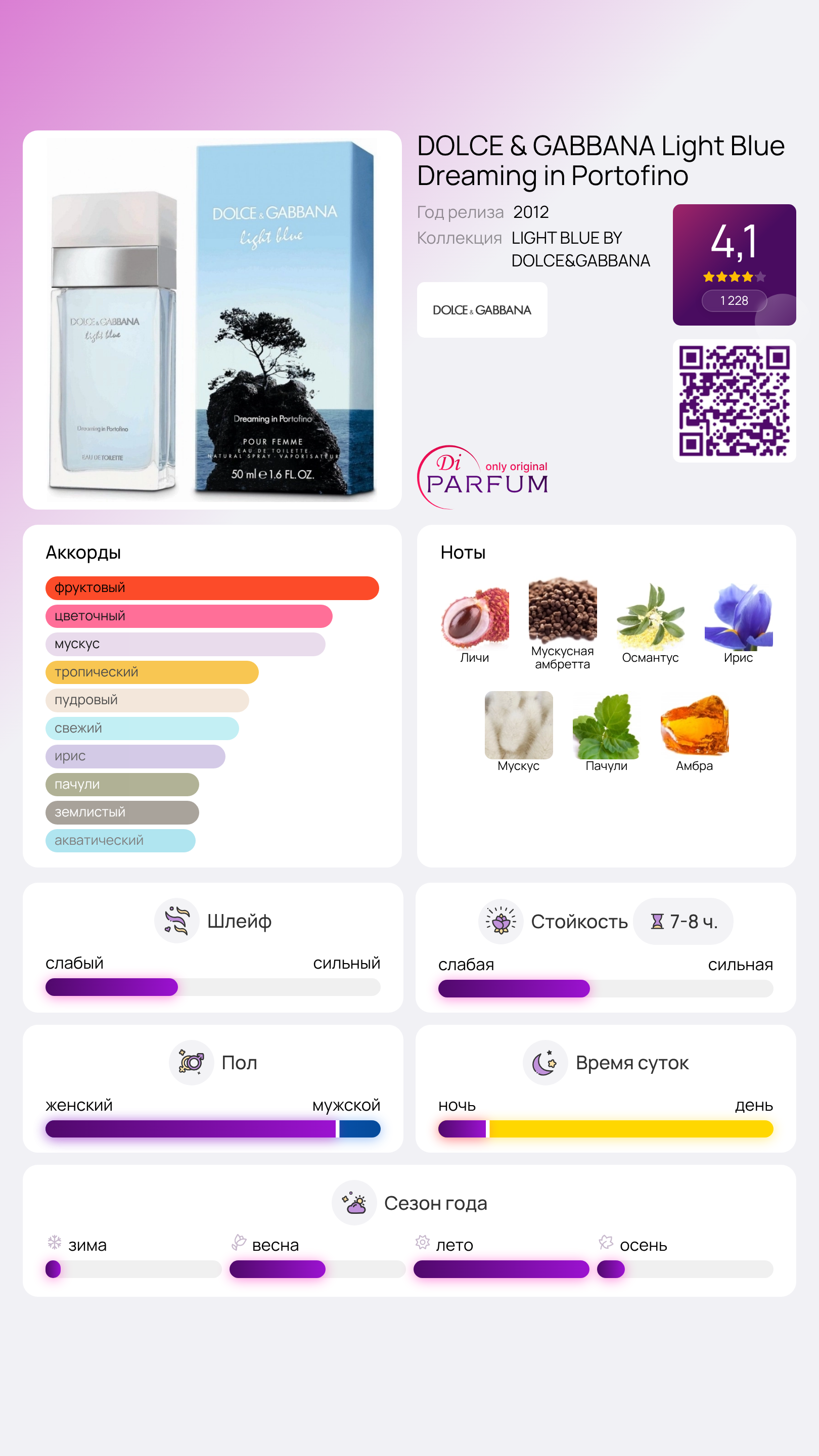 Загадочная незнакомка, одетая в свежий аромат Dolce Gabbana Light Blue Dreaming in Portofino, восхитительна, интригующая и наполненная чувственностью, как сами очаровательные уголки на побережье кристально чистых вод Средиземного моря. Погрузитесь в волшебную атмосферу жарких летних дней, когда происходит встреча, обещающая захватывающее приключение — игру соблазнения.