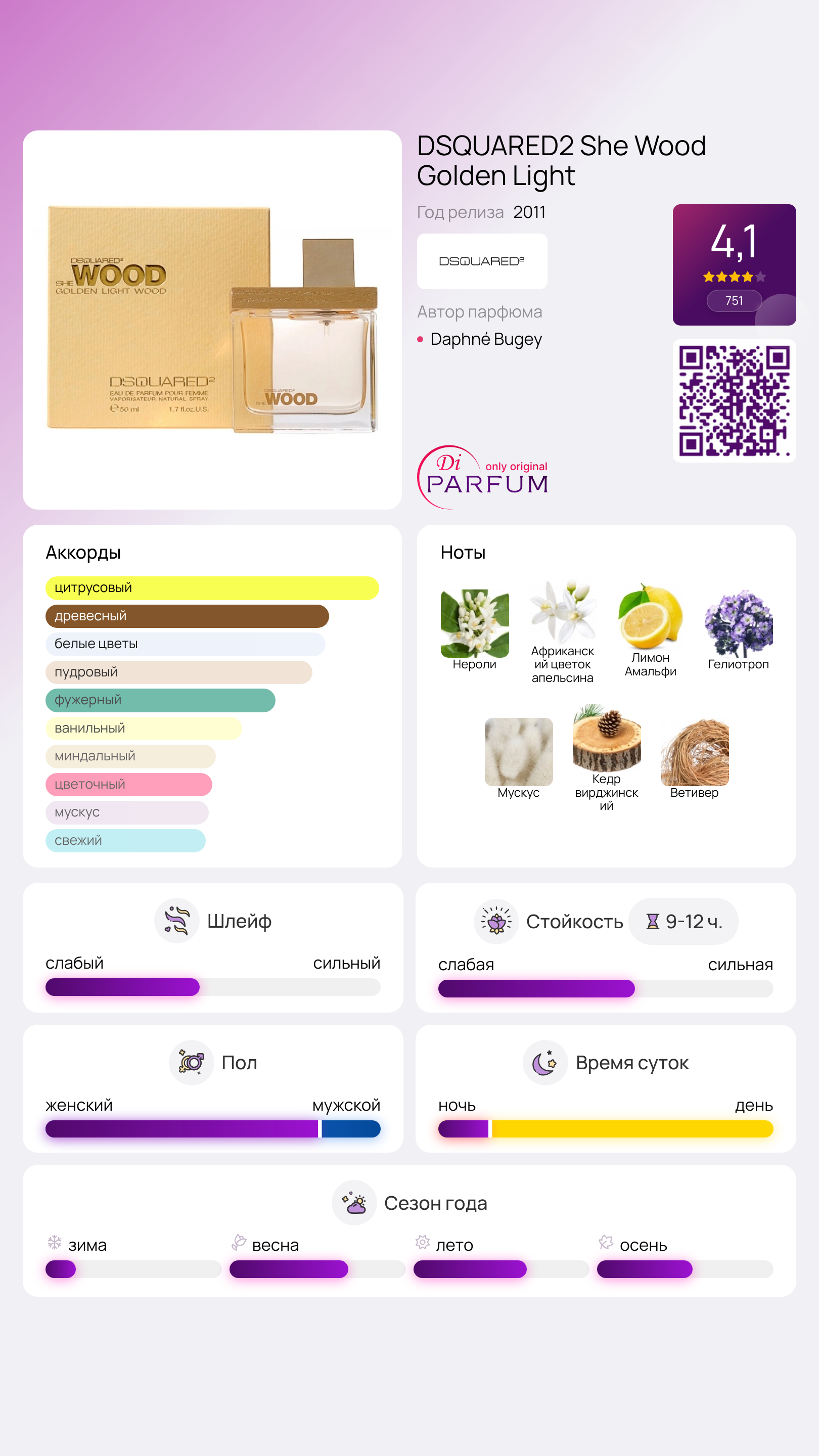 DSQUARED2 She Wood Golden Light парфюмерная вода, 50 мл