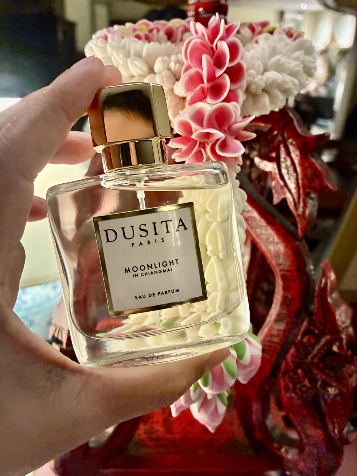 Dusita Moonlight In Chiangmai — это десятый аромат в уникальной линейке французского бренда, созданный его основательницей. Она черпала вдохновение из своего путешествия в Чиангмай, расположенный на севере Таиланда. Девиз этого парфюма звучит так: «Взаимопонимание возникает не из-за того, что мы обитаем на одной планете, а потому что мы все живем под едиными небесами». Аромат передает тайную и чувственную симфонию, основанную на контрасте света и теней ночи, наполненной луной. Он создает атмосферу беззаботности, плавая между небом и землей.