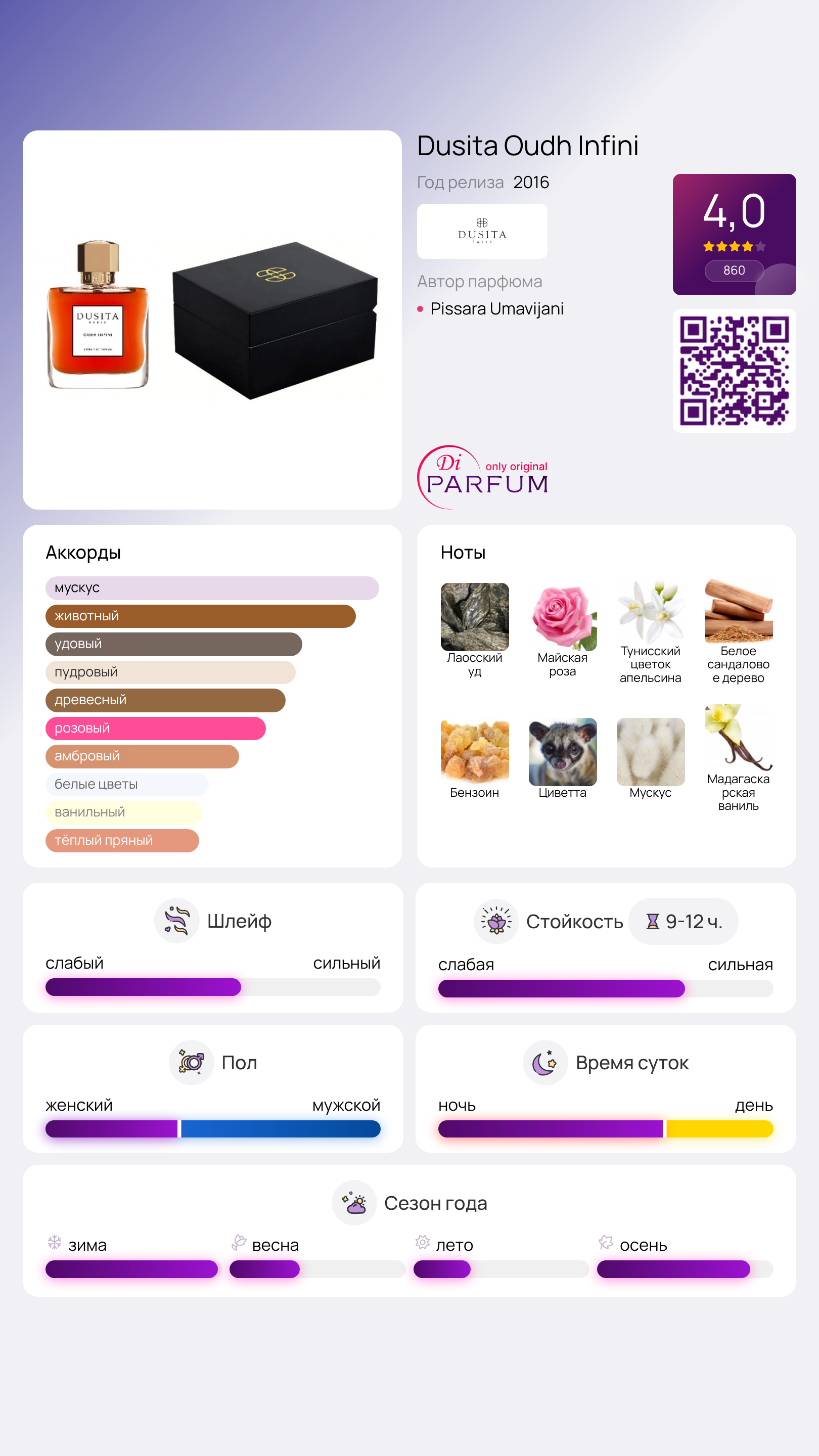 Oudh Infini от Dusita – это роскошный аромат для тех, кто ценит чувственность, обаяние и манкость.