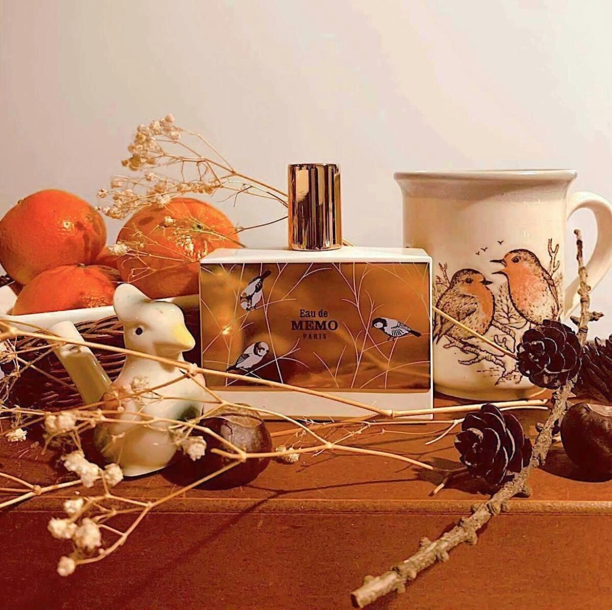 Парфюм Eau de Memo от Memo, выпущенный в 2017 году и относящийся к восточной древесной группе, позволяет ощутить моменты весны во время спокойных прогулок по лесу, когда солнечное тепло наполняет атмосферу умиротворением. Это унисекс-аромат, который освежает бергамотом и лимоном, на фоне которых изящно раскрывается нотка чая.