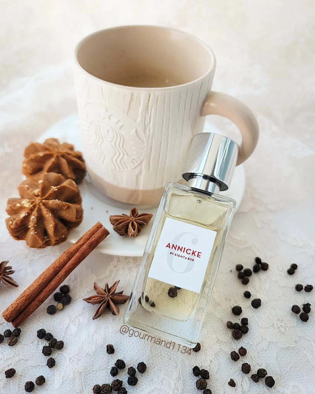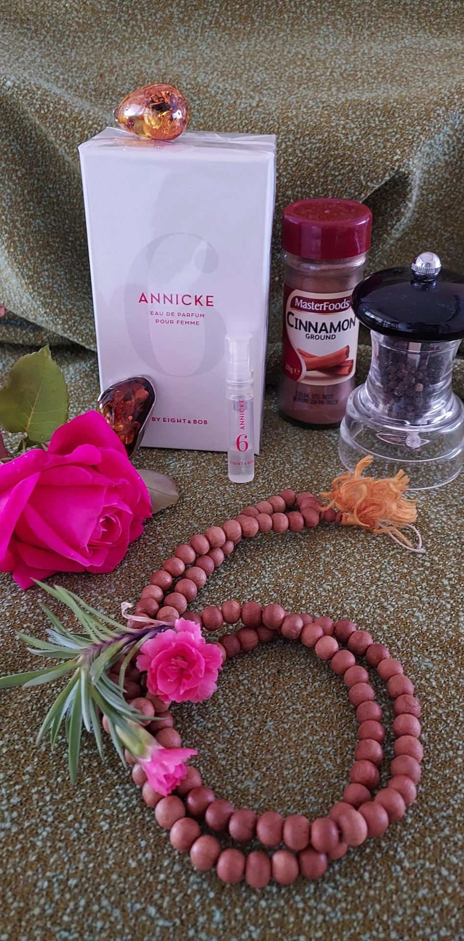 В сердце композиции пряная и теплая корица создает вихрь эмоций, затягивая в свои объятия соленую амбру с ее восхитительным минеральным нюансом. А древесная база Eight & Bob Annicke 6, состоящая из сандала, формирует элегантный кремовый орнамент, от которого исходят мускусные нити шлейфа, сияющие желанием и страстью благодаря крупным бусинам лабданума.
