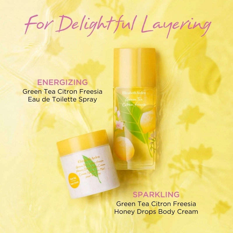 Нежный шлейф формируется благодаря мускусным нотам и дымчатой березе, создавая умиротворяющее ощущение. Легкая формула Green Tea Citron Freesia от Elizabeth Arden – это прекрасный выбор для ежедневного использования. Этот фланкер первоначального выпуска 1999 года представлен веганской композицией, выпущенной в 2023 году, в виде туалетной воды и крема для тела. Фирменный флакон имеет яркий лимонный цвет, подчеркивая его свежесть и жизнерадостность.
