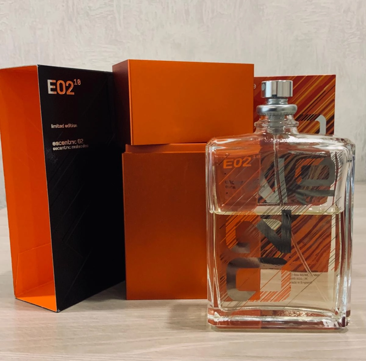 В верхней части пирамиды расположена гедеон — синтетический аналог жасмина, который впечатляет своей легкостью и свежестью, очаровывающей рецепторы кристальной чистотой и неземным раскрытием. Это придаёт пирамиде легкость и объём, с длительным послевкусием и устойчивостью. Заключительный аккорд эксперимента Escentric Molecules Escentric 02 Limited Edition празднуется глотком холодного джина, оставляющего приятный можжевеловый послевкусие с еловыми оттенками.