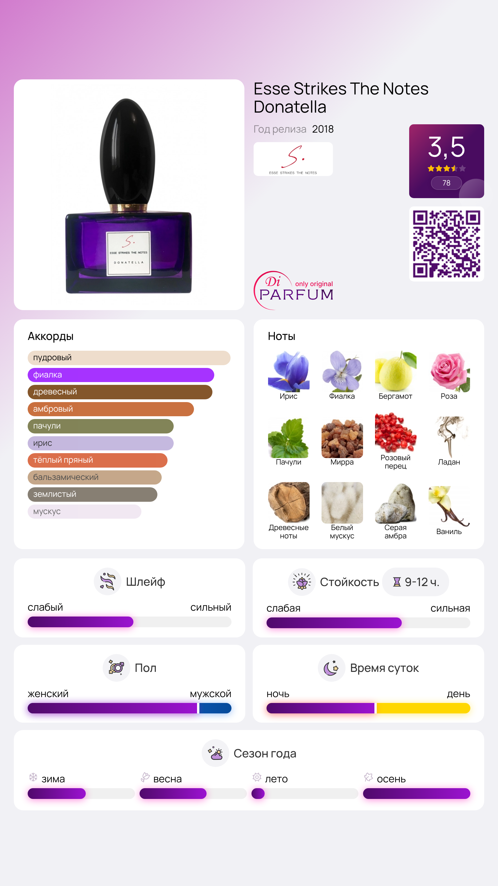 Esse Strikes The Notes Donatella – это аромат, олицетворяющий моменты тишины и внутреннего самосозерцания. Он помогает раскрыть индивидуальность и полюбить свой внутренний мир.