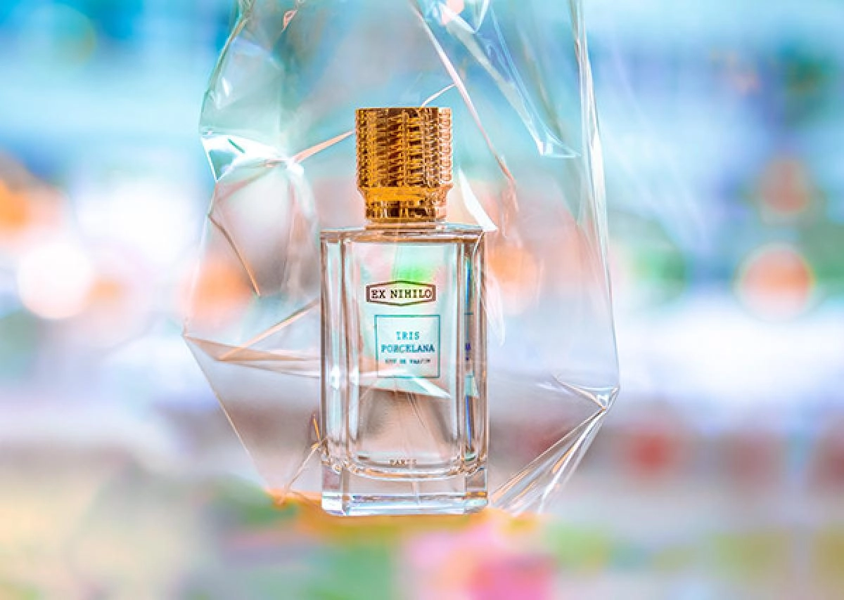 Дизайн флакона Ex Nihilo Iris Porcelana отражает суть самого парфюма. Прозрачное стекло символизирует чистоту и легкость, а золотой колпачок намекает на ценность и роскошь используемых ингредиентов.