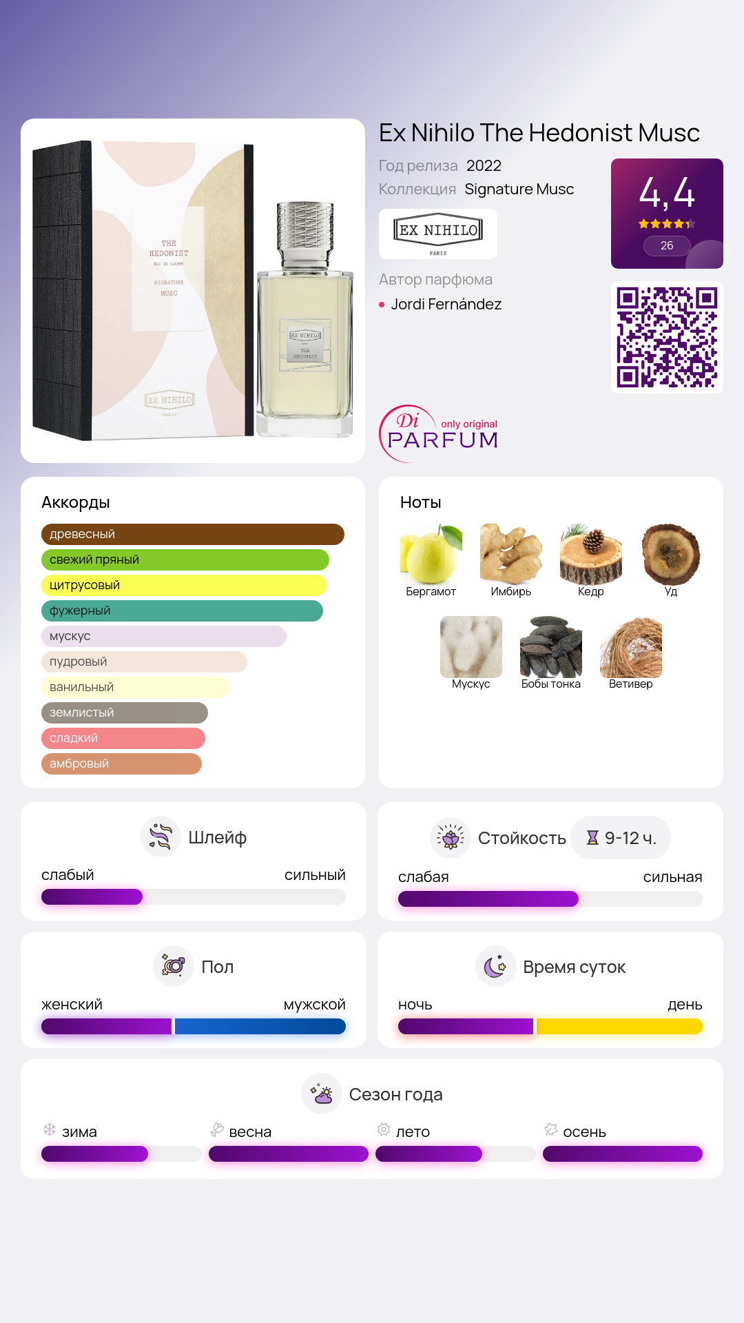 Хорди Фернандес, один из ведущих парфюмеров известного французского бренда Ex Nihilo, в 2022 году вновь привлек внимание ценителей парфюмерного искусства своим новым произведением под названием The Hedonist Musc. Эта смелая и необычная композиция в стилевом направлении древесно-фужерных ароматов, представлена в элегантном и минималистичном флаконе, завоевала сердца поклонников и заняла высокие позиции на международной парфюмерной арене.