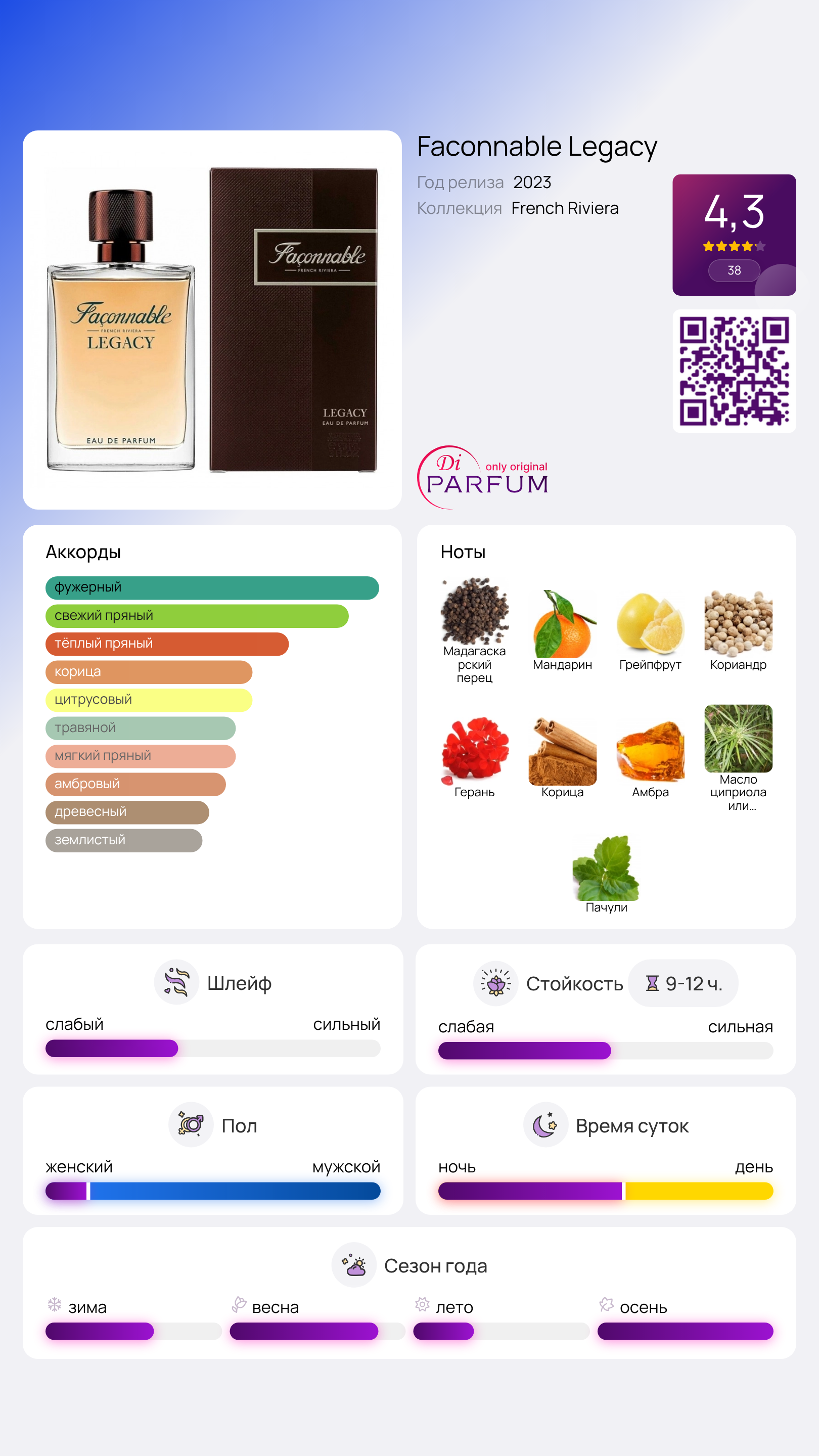 Legacy от Façonnable — это восточно-пряный аромат для мужчин, который был представлен в 2023 году. Этот новый парфюм обладает уникальной композицией, которая привлекает внимание своей свежестью и теплотой.