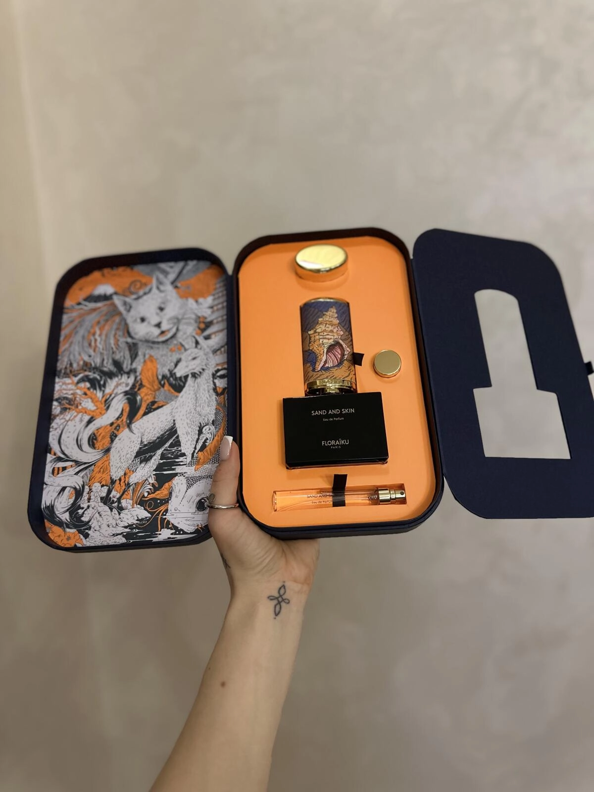 Аромат Sand and Skin, представленный в стильном и ярком дизайнерском флаконе, является одной из настоящих жемчужин коллекции французского бренда Floraiku, созданной выдающимися мастерами нишевой парфюмерии в 2023 году. Этот удивительный сладковато-восточный эликсир, который добавляет в ряды цветочных ароматов, сразу же захватывает внимание и сохраняет свою магическую ауру до самого последнего аккорда.
