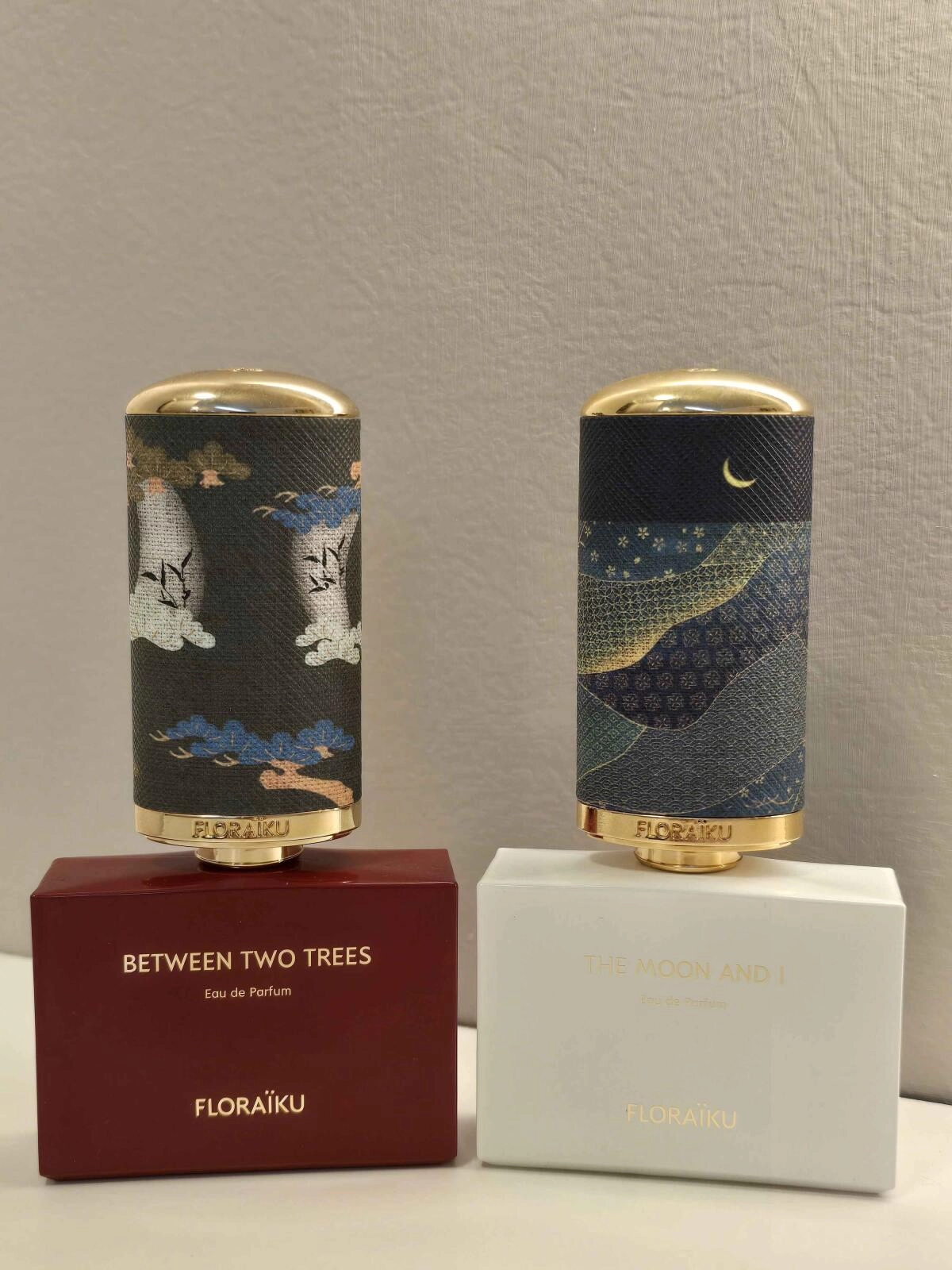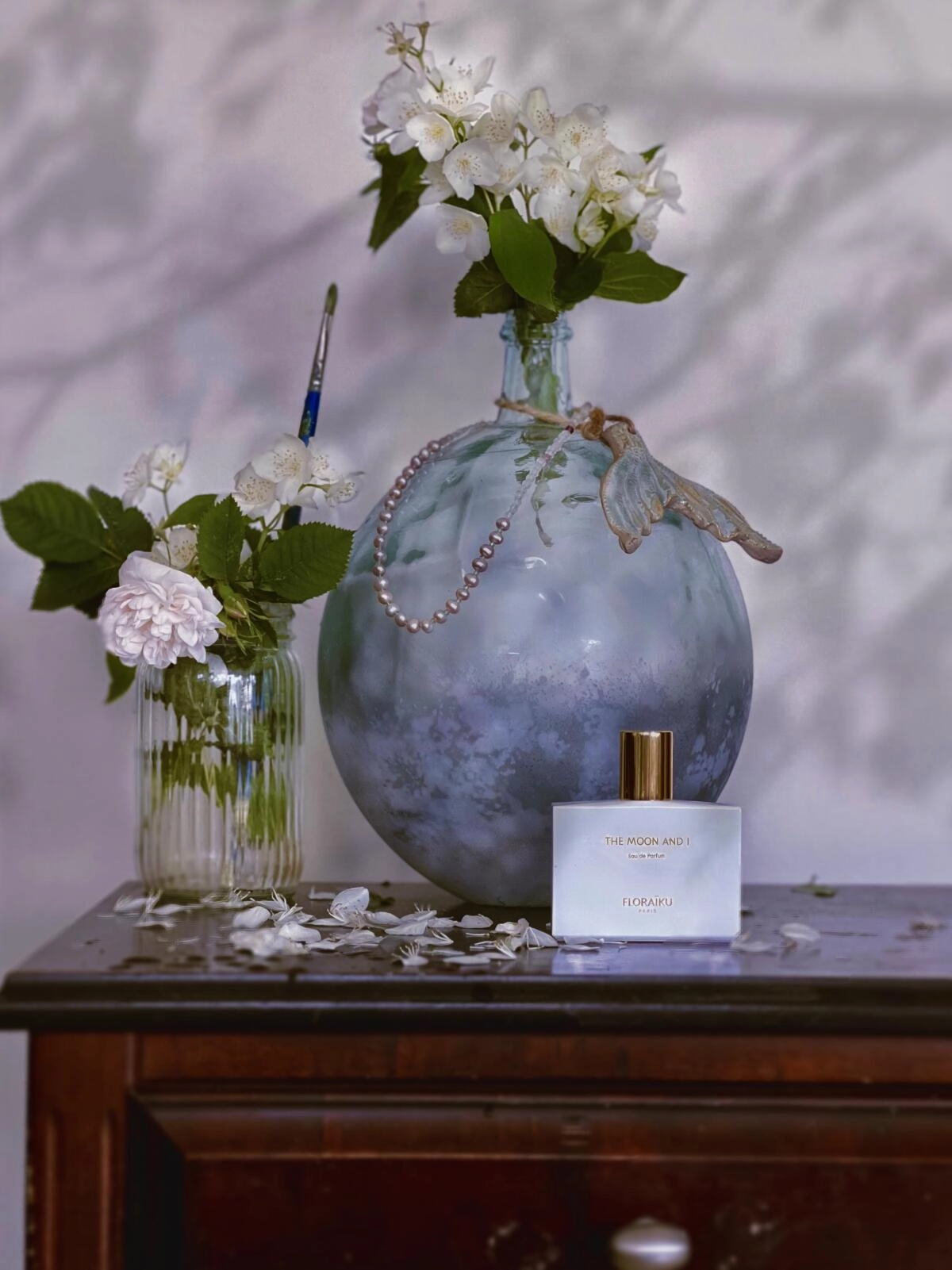 Изящный фужерно-древесный аромат Floraiku The Moon and I воплощает дымные нотки черного чая и стал частью концептуальной французской коллекции, известной как «чайная четверка». Ароматическая симфония привлекает внимание благодаря тонкому сочетанию изумительных компонентов. Строки стихотворения-хокку отражают суть: «То на Западе, то на Востоке «Луна и Я» рассматриваем цветы ночью, вдыхая их аромат».