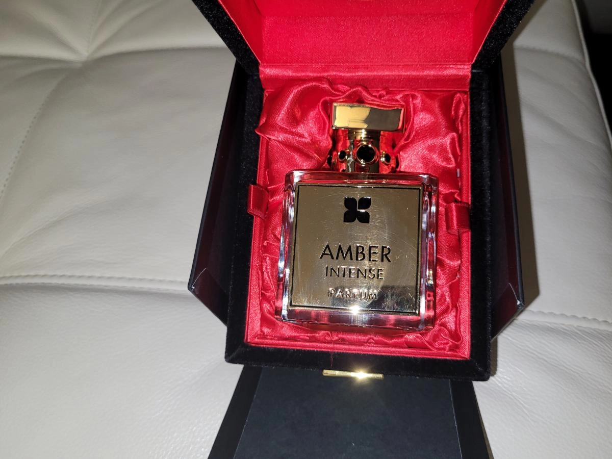 В начальных нотах яркая цитрусовая энергия кисло-терпкого бергамота и сладкого апельсина сталкивается с темпераментом черного перца и теплой, бархатистой корицей. Глубокие и пикантные ноты пачули, насыщенные горечью чернозема и дымом, создают идеальный мрачный фон для раскрытия дикой и анималистической сущности амбры, а также провокационной минералальности мускуса. Верхний ярус Amber Intense насыщен специями, которые сложно различить по отдельности, но в их единстве зарождается мощная и жаркая волна, словно окутывающая кожу маскулинного характера.