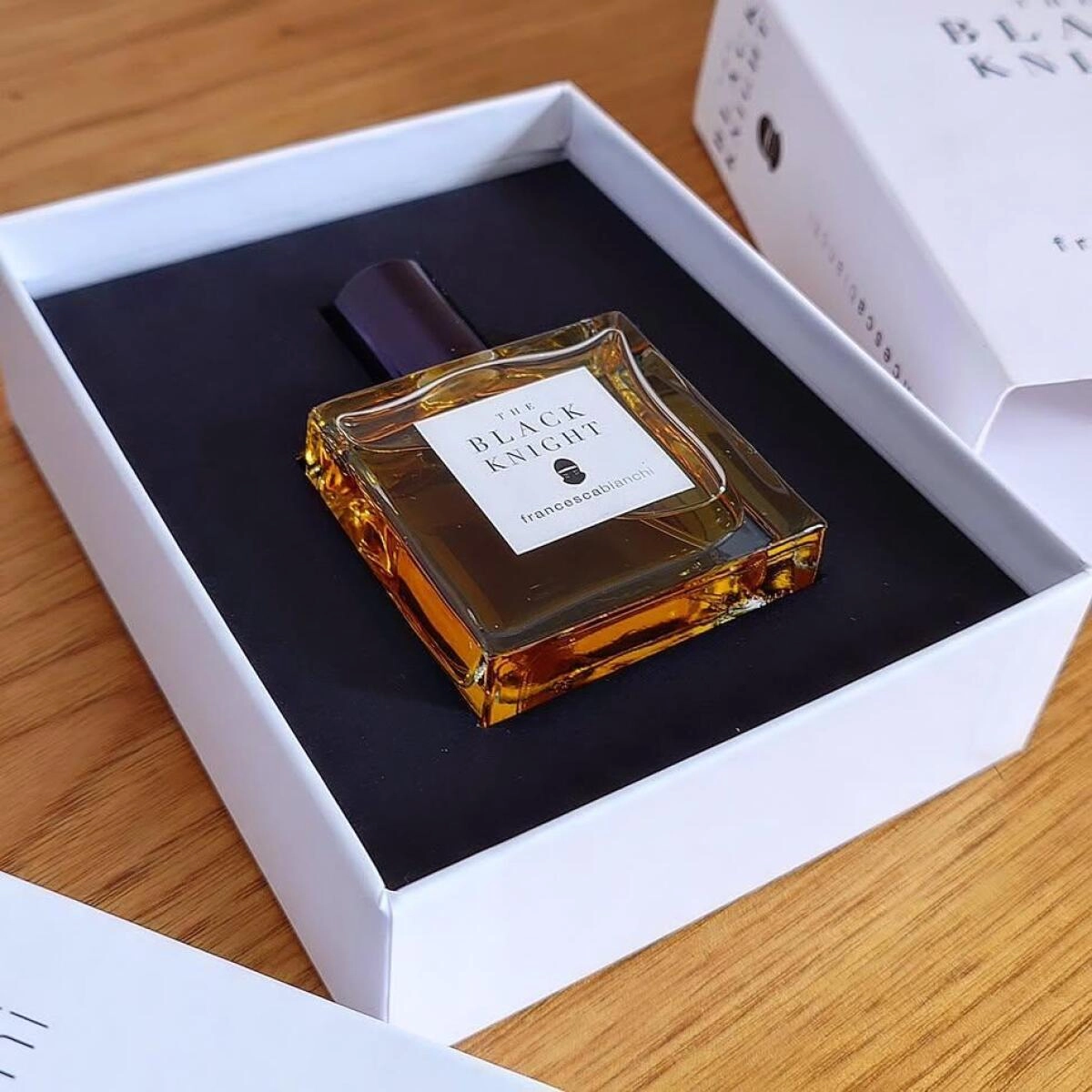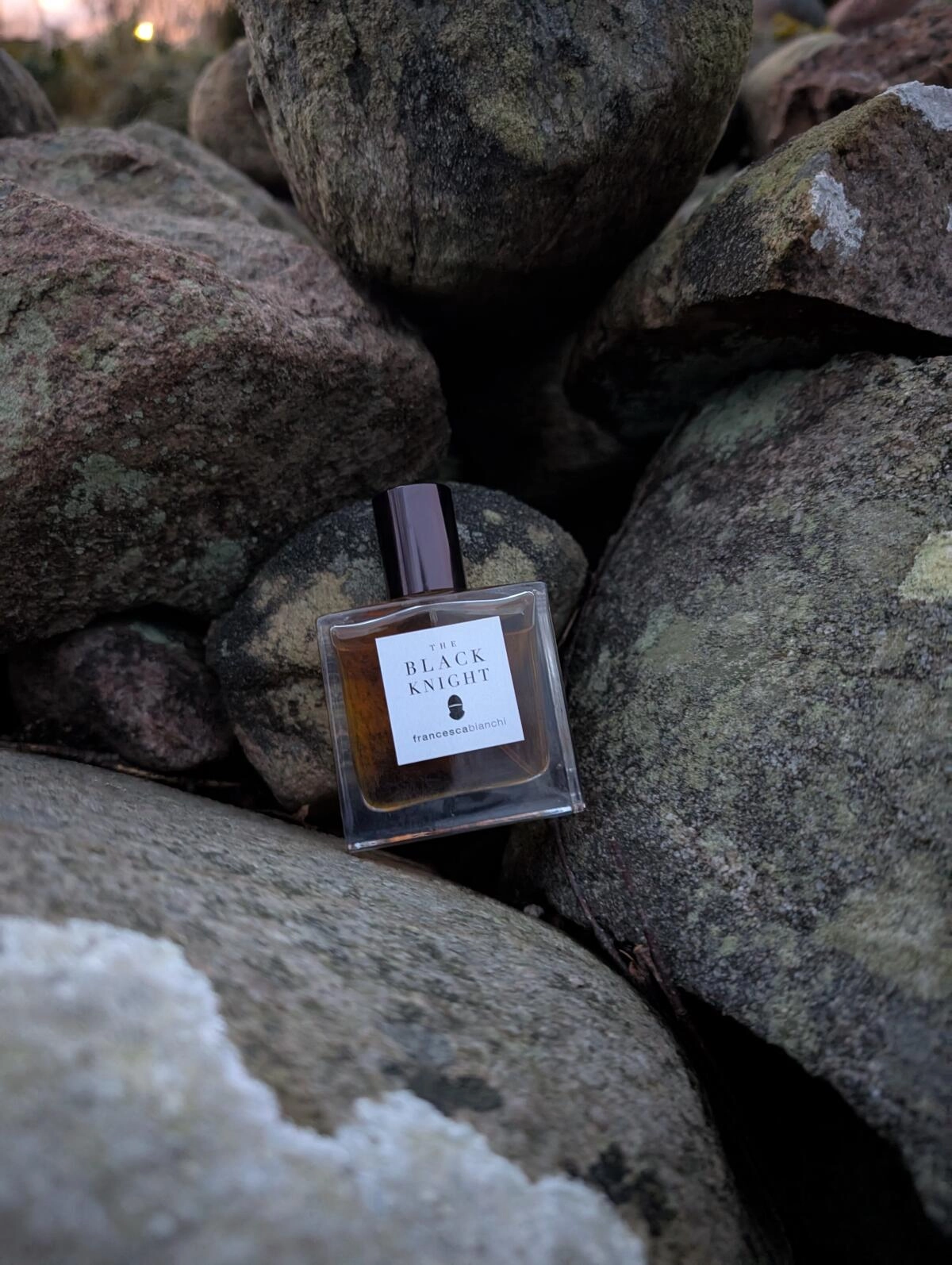 Франческа Бьянчи глубоко проработала образ готического и загадочного Черного рыцаря в своем парфюме Francesca Bianchi The Black Knight. Это непростой персонаж, который вызывает уважение и требует принятия без попыток изменить его суть. Он изображен как бесстрастный герой, с резким и независимым характером. В его образе не предусмотрена улыбка, только длинный черный плащ скрывает его фигуру, а стальной меч блестит, отражая цвет луны.