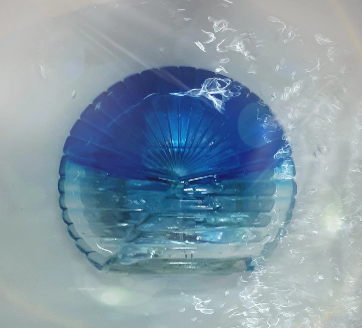 Аромат дополняется тайными нотами сандала, мускуса и амбры, что придает ему загадочность. Флакон парфюма Blue выполнен в форме ракушки, как будто хранящей в себе тайны океана.