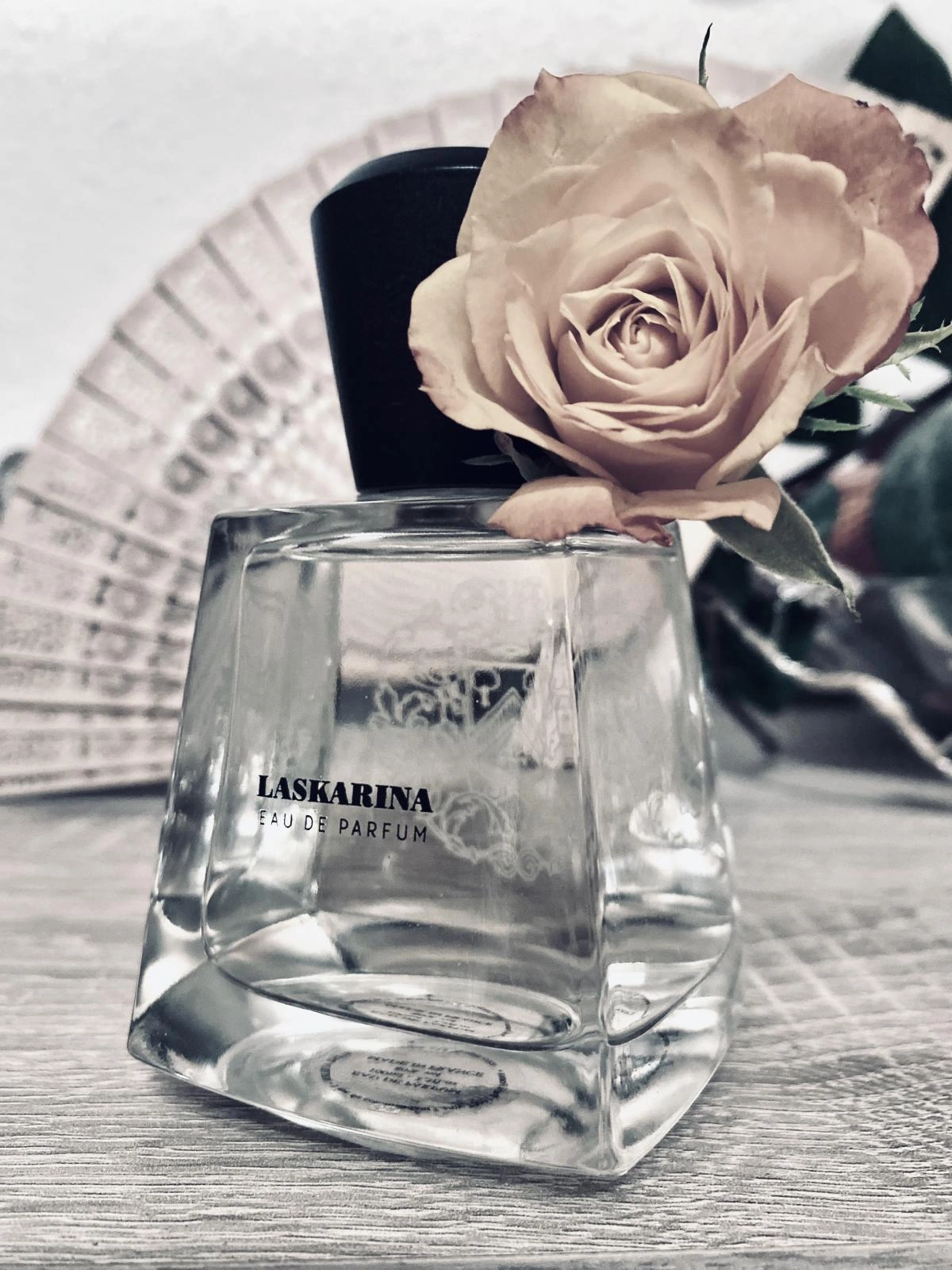 На средних аккордах раскрываются нежные ноты розы и флердоранжа, а в базовых нотах начинается яркое музыкальное зрелище с олибанумом, аброксаном, ирисом и черным перцем.
