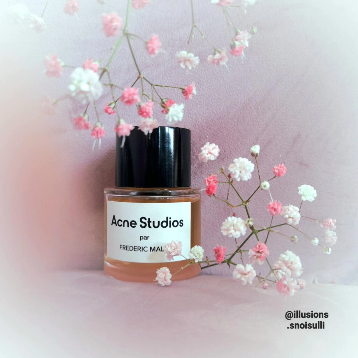 Эти духи адресованы молодежной аудитории поколения Z, представляя собой уникальный опыт. Спокойная композиция Acne Studios от Frederic Malle была создана в сотрудничестве основателя французского дома и креативного директора Джонни Йоханссона. Их совместный замысел родился за чашкой кофе в Париже, и заключался в том, чтобы воссоздать "перламутровые переливы жемчужины" и передать концепцию полной свободы творчества. В ароматной воде соединяются дерзость и невинность.