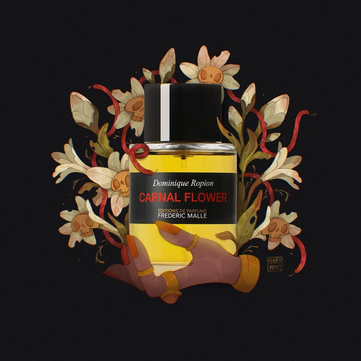Парфюм Carnal Flower основан на экстракте туберозы. Ее аромат с давних времен привлекает парфюмеров благодаря своей противоречивой природе, которая сочетает в себе свежесть нежных цветов и сексуальность. Парфюмер Доминик Ропийон в этой композиции смог подчеркнуть уникальную двойственность туберозы, добавив к ней нежный жасмин и теплый мускус.