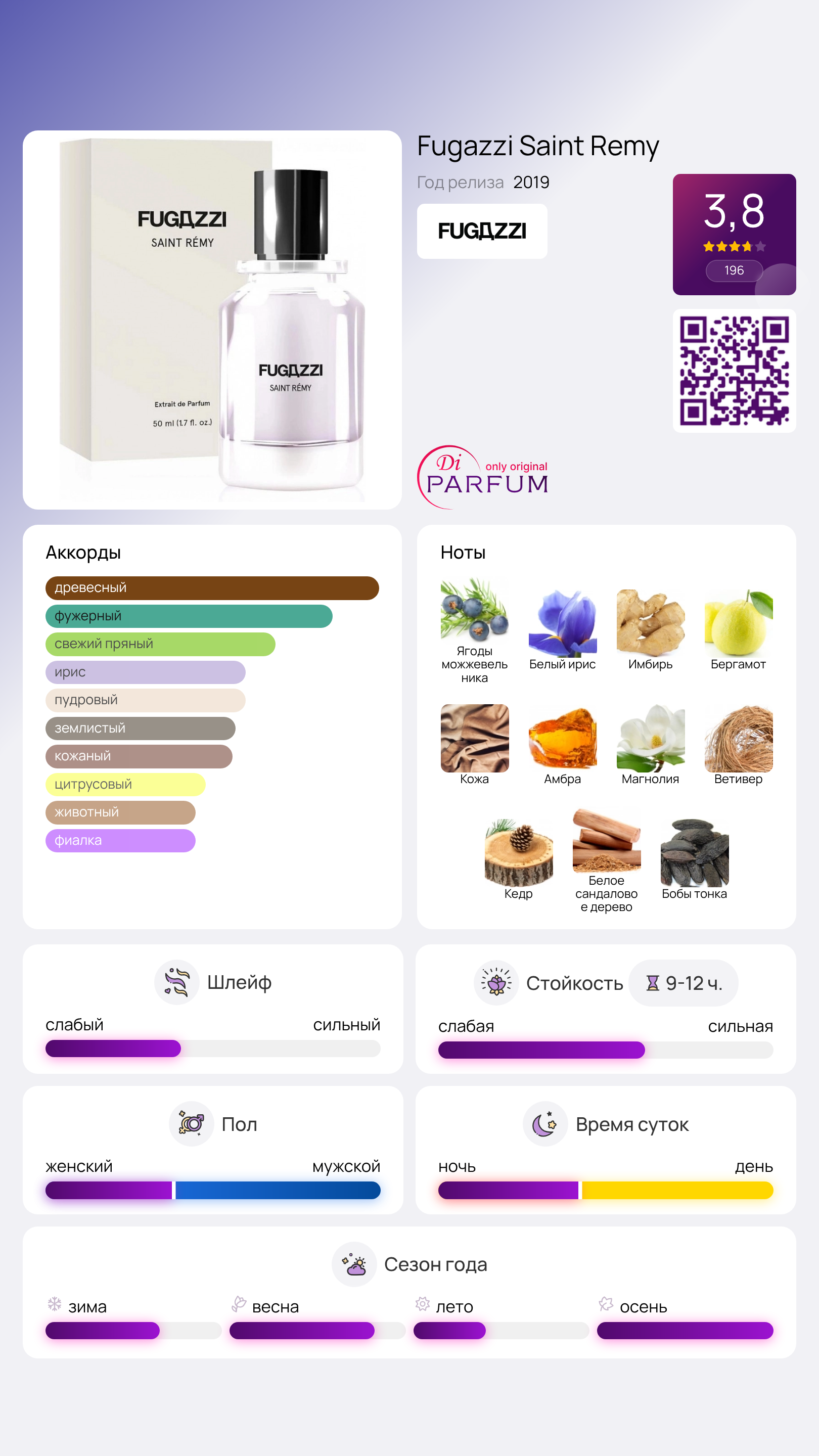 Данный аромат значительно усиливает привлекательность его обладателя, что делает его идеальным выбором для желающих выделиться из толпы. Безупречное сочетание ингредиентов создает ощущение роскоши, подобно дорогому кожаному плащу с вельветовой подкладкой, обретая ноты дымного ветивера. Хвойный можжевельник гармонично соединяется с нежной ирисовой пудрой, создавая атмосферу загадочного леса, где хвойные деревья и ягоды манят в свои тенистые объятия. Элегантный белый ирис оттеняет образ, а свежесть лазоревого моря добавляет яркие акценты.